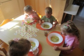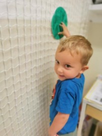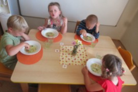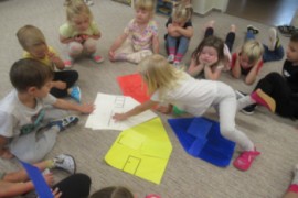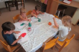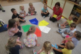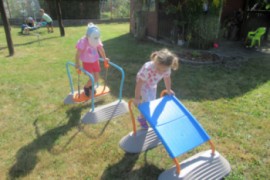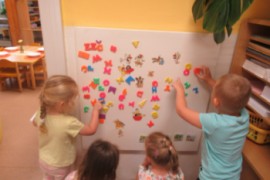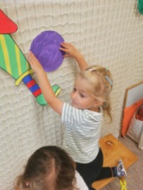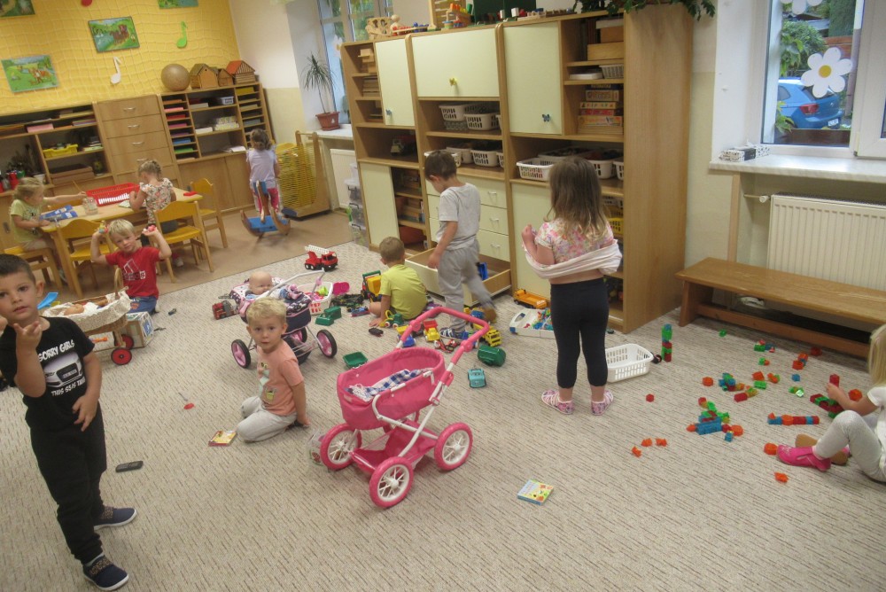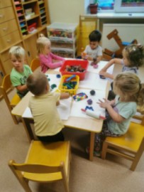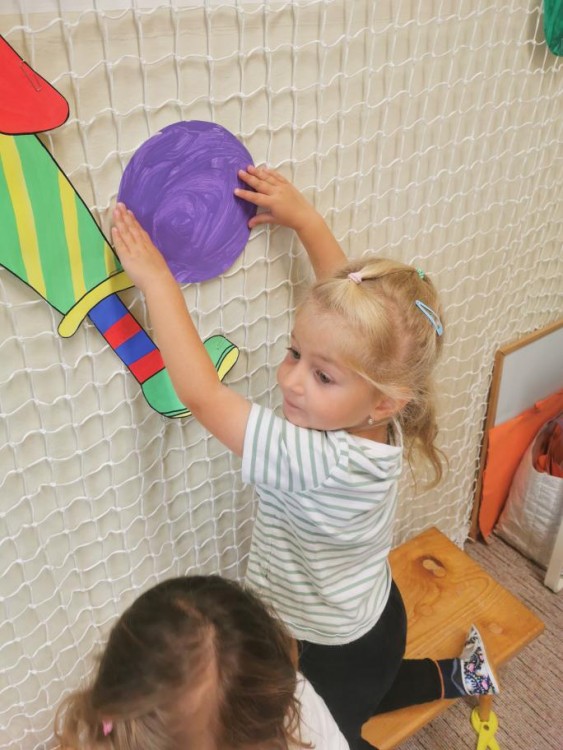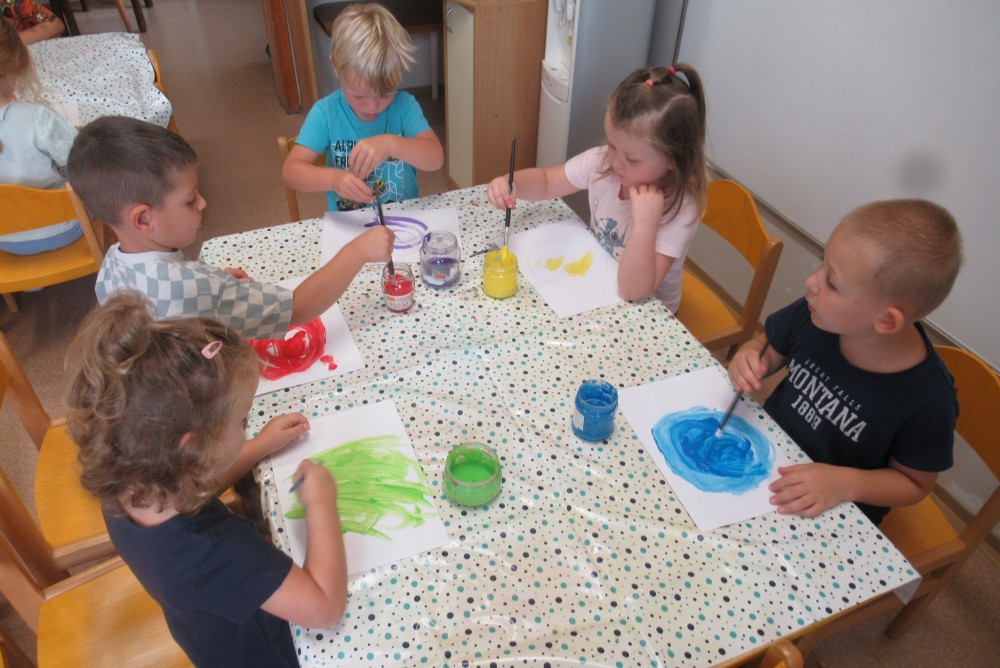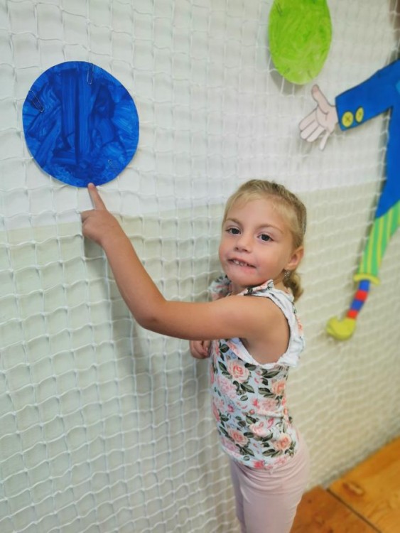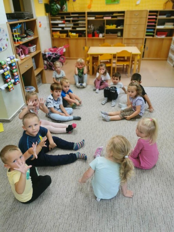 První týden s dětmi ve školce byl převážně seznamovací. Děti si na vybraly značku, našly si svá místa u stolečků a v šatně. Jak se správně sedí u stolečků? To přeci už každý ví a kdo neví, tak se to naučí. Děti si opakovaly a seznamovaly se s barvami pomocí barevných domečků. Našemu šášovi děti vytvořily mnoho barevných balónků. Nejdříve malovaly balónky temperovou barvou. Šášovi se balónky moc líbily a děti si mohly vybrat, kam jejich namalovaný balónek šášovi umístí. Kam patří hračky a kdy se uklízí? naučíme se správně třídit a rovnat stavebnice....Zahráli jsme si také na muzikanty. Zpívali jsme jednoduché písničky za doprovodu dřevěných tyček.