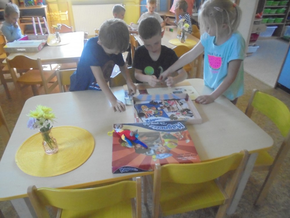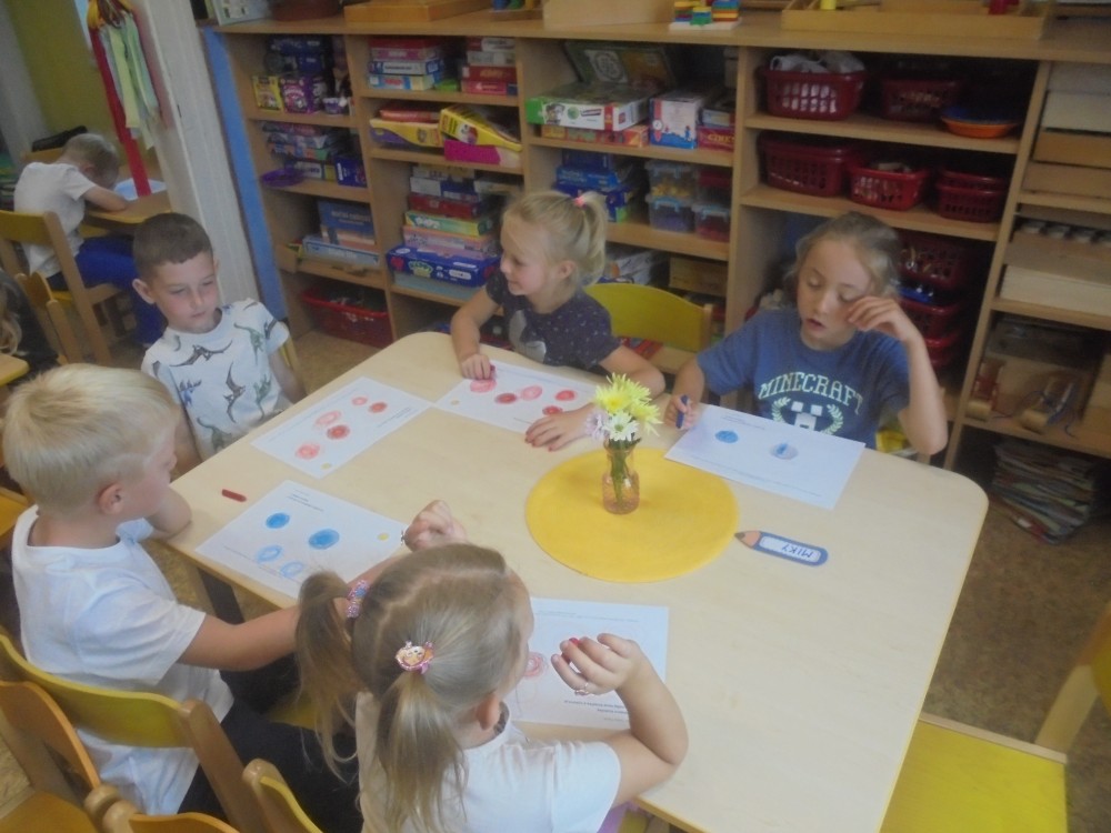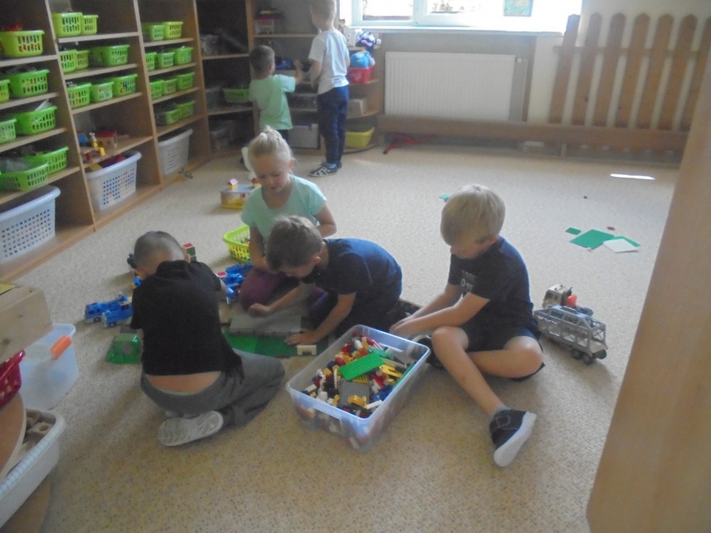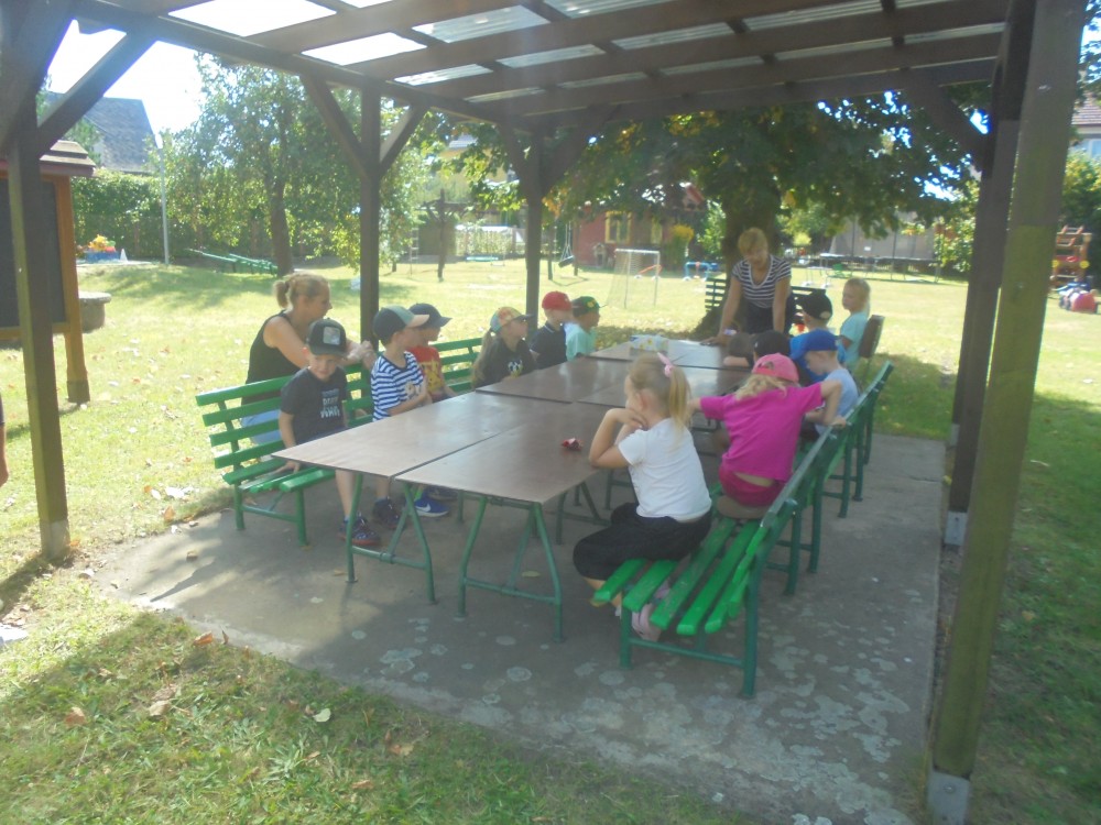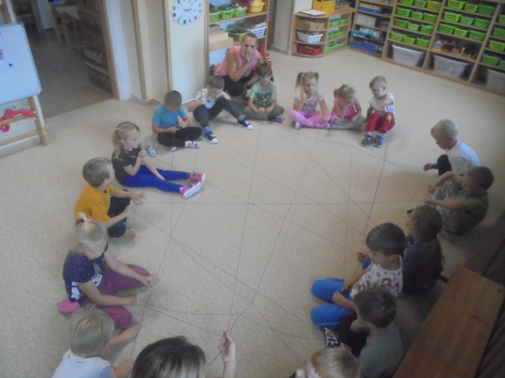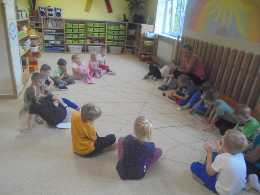 Společně jsme se přivítali v novém školním roce. V komunitním kruhu jsme si povídali, co jsme o prázdninách dělali a děti malovaly svůj první obrázek na téma ,, Zážitky z prázdnin“. Připomněli jsme si pravidla ve třídě, v prostorách MŠ i na školní zahradě. Ve středu jsme navštívili zimní stadion, kde proběhla akce ,,Ledové září“. Viděli jsme ukázku hokeje i krasobruslení a děti si vyzkoušely slalom s hokejkou. Využili jsme hezkého počasí a vyběhli jsme cvičit na školní zahradu. Na konci týdne jsme společně upletli pavučinku přátelství a utvrdili jsme se v tom, že i když jsme každý jiný, společně táhneme za jeden provaz ![]()