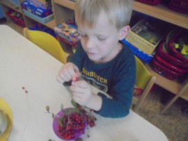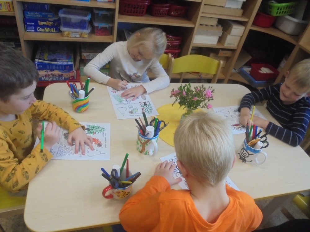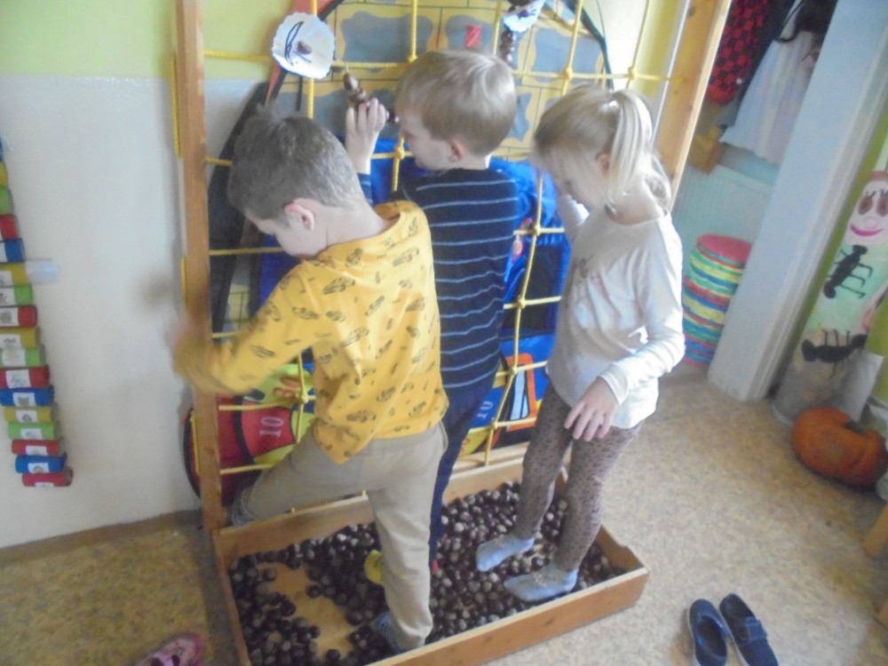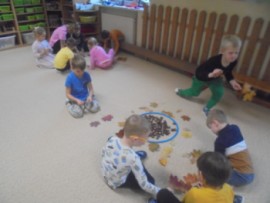 Pohádka Jak Křemílek s Vochomůrkou vařili šípkový čaj nás inspirovala k výrobě šípkového čaje z čerstvých šípků. Houby, houby, houbičky, ukažte své hlavičky. Opakovali jsme nejznámější druhy hub (jedlé i nejedlé) a následně děti tvořily houby s lístečky. Při hrátkách s přírodninami jsme si zopakovali matematické představy, určování přídavných jmen velký, menší, nejmenší a také jsme přírodniny využili při ranním cvičení. Děti tvořily skřítky z listí, modelovaly houbičky, pomocí krepového papíru vykouzlily barevné lístečky, kreslily tuží své postavy. S pohádkou ,, Hříbek“ si děti pomocí obrázků procvičily časové skládání děje. S písničkou ,, Jaro, léto, podzim, zima“ jsme si zahráli na hudebníky a pomocí Orffových nástrojů děti písničku doprovodily. Při vycházkách do lesa jsme pozorovali měnící se podzimní přírodu. Nacházeli jsme přírodniny, které děti rády sbíraly, hromadily a postavily si i lesní domeček. Byl to opravdu týde, plný tvoření a poznávání nového.![]()