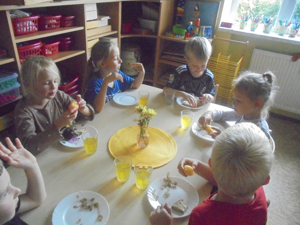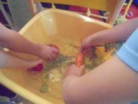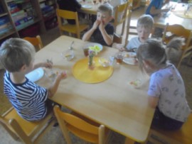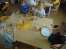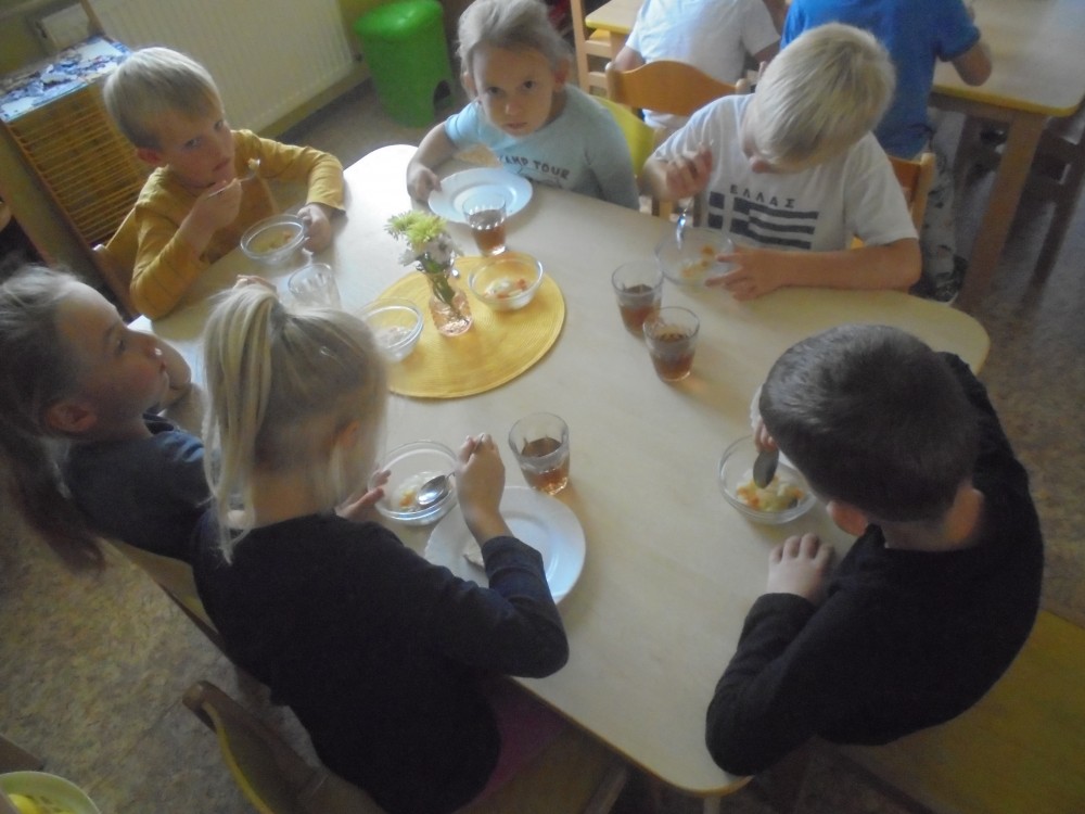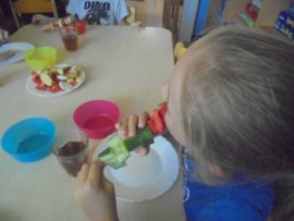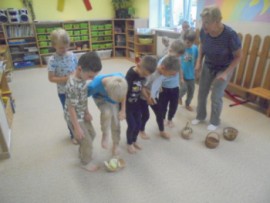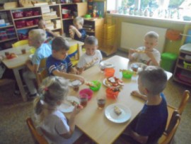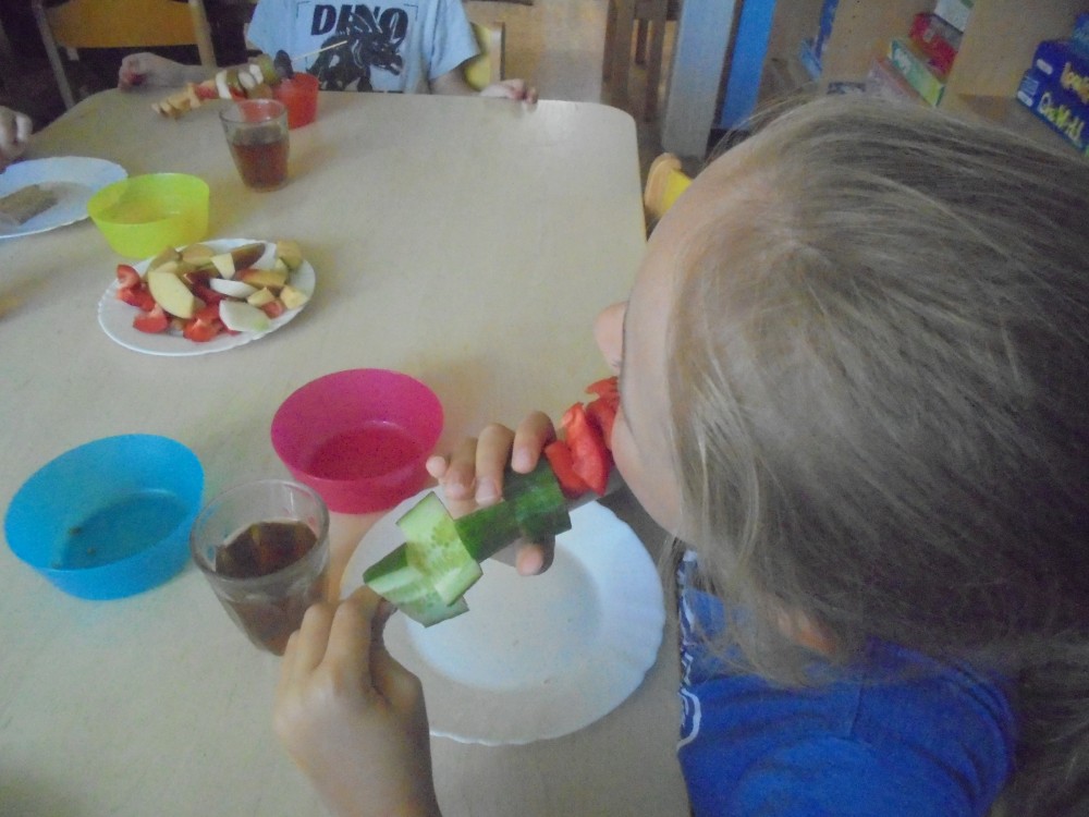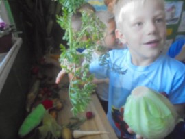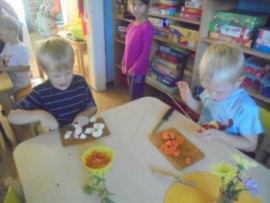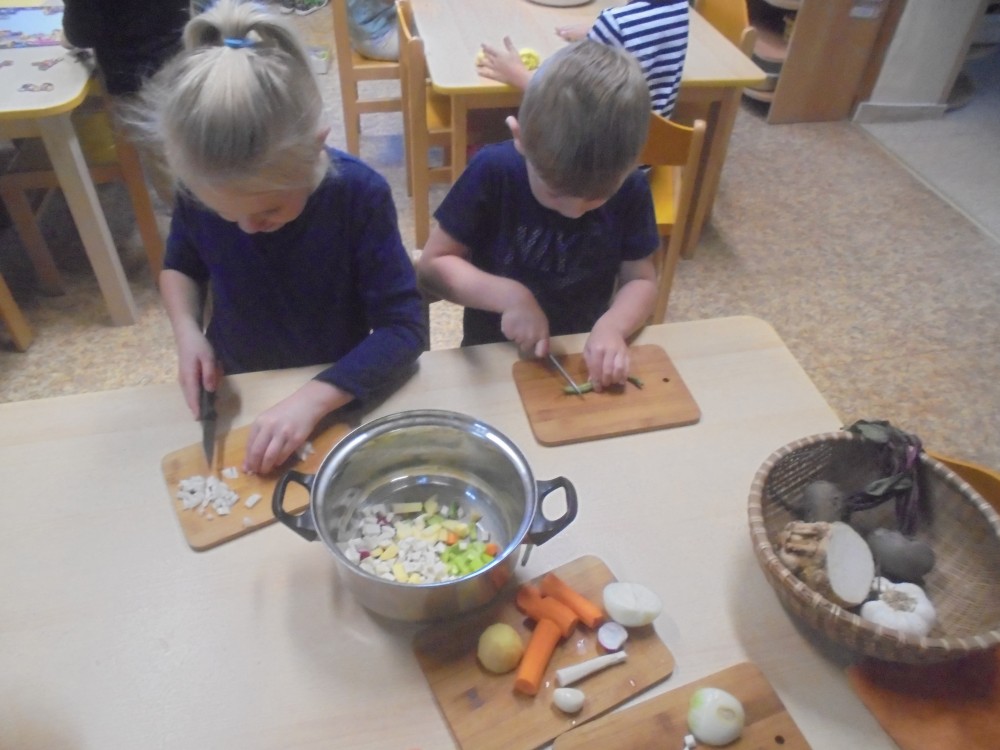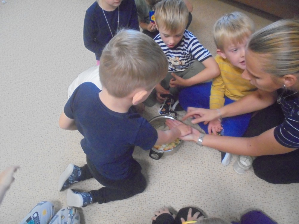 V tomto týdnu jsme si povídali, jaký je rozdíl mezi ovocem a zeleninou, roztřídili jsme dané druhy a každý si vytvořil ovocný nebo zeleninový špíz. Také jsme si společně uvařili zeleninovou polévku. Velmi se nám povedla, všechnu jsme snědli. Zahráli jsme si pohádku ,,O veliké řepě“ při níž jsme si zopakovali matematickou řadu. Ve výtvarném tvoření děti vystřihly "košík a naplnily ho" různými druhy ovoce a zeleniny, které malovaly temperovými barvami. Děti se naučily tanečky s doprovodem lidových písní - ,,Šla Nanynka do zeli“, ,,Cib, cib, cibulenka“ a ,, Šel zahradník do zahrady“. A na konci týdne si děti z keramické hlíny vytvořily stojánek na tužky ve tvaru jablíčka.