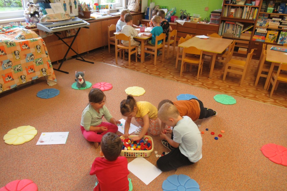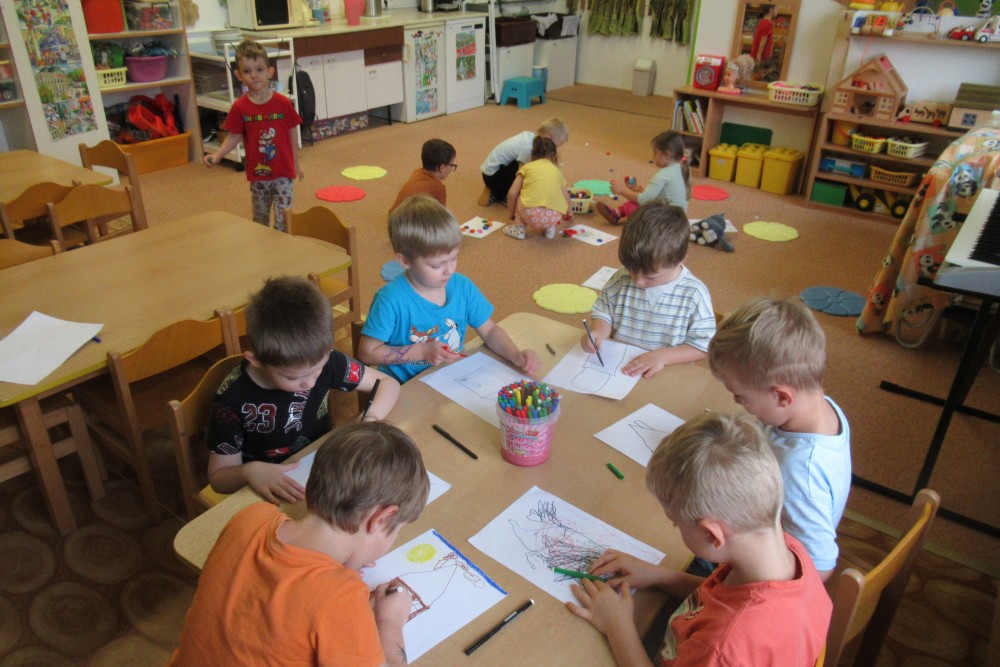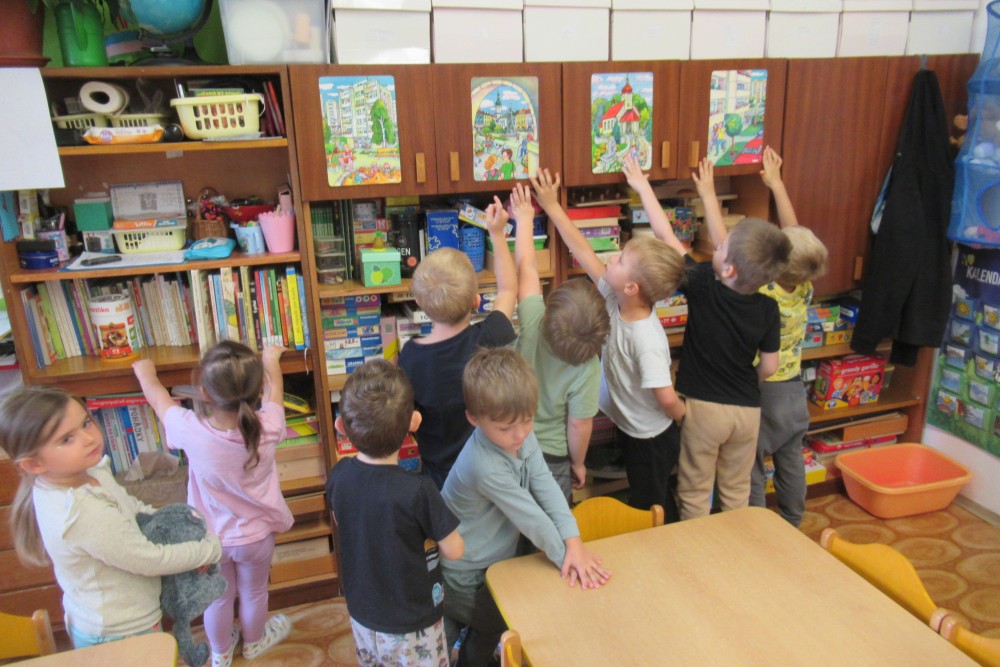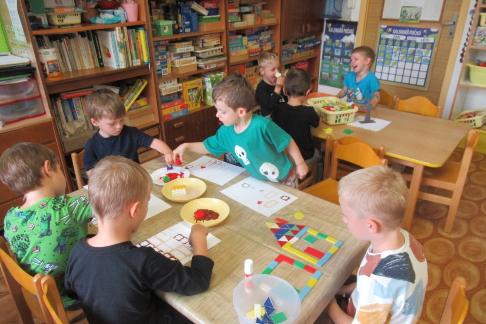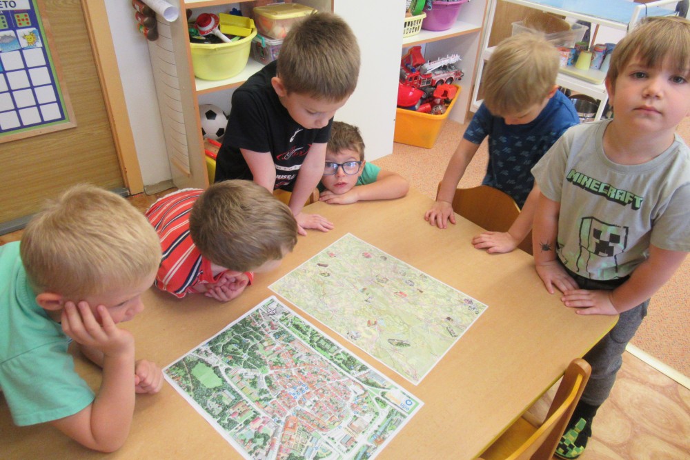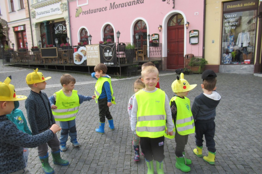 Pohádka "Jak se kocourek ztratil" nás přimněla přemýšlet, proč máme znát svou adresu a bydliště. Rodiče, podívejte se spolu s dětmi na fotky z naší úterní procházky Českou Lípou. A zkuste poznat, kde byli naše zastávky a fota pořízena. Také jsme vše zaznamenali na mapě, i nadále budeme pokračovat cestováním Českou Lípou a zaznamenávat. Ve třídě z obrázků jsme pojmenovali všechna místa, která tu máme. Děti se staly stavbaři domů, domečků, nádraží a cest. Určovaly rozdíly, velikosti a počítaly. S kocourky cděti vičily, společně tvořily chlupatý kožíšek. Všechny děti tiskaly kostkami domeček či panelák. Hra s geometrickými tvary děti bavila. Lepily domečkům okna, dveře.....