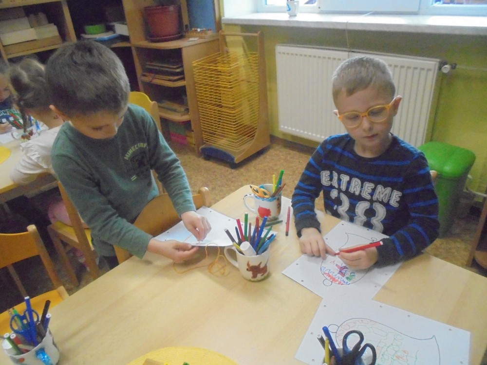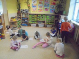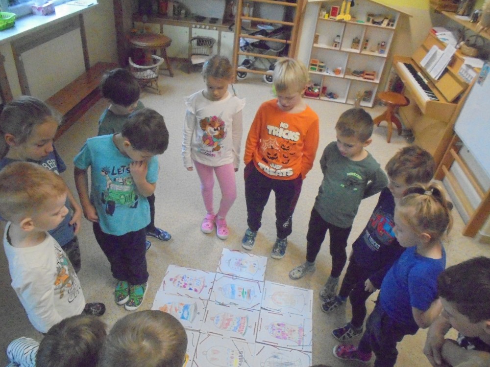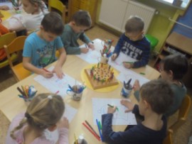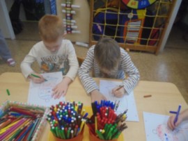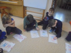 Delší víkend a proto delší vyprávění dětí. Venku mrzne, děti si opakují postup při oblékání a hlavně - MÁM V BUNDĚ LÁTKOVÝ  KAPESNÍK? Hodně jsme zpívali, děti si opakovaly podzimní tanečky, básničky a písničky. Velká byla pro děti událost - vánoční fotografování. Vše se povedlo a tak se můžeme s podzimem rozloučit.Děti ozdobily zvoneček a provlékáním barevných vln ho ozdobily. Ale uzlíky a kličky dětem ještě nejdou.
