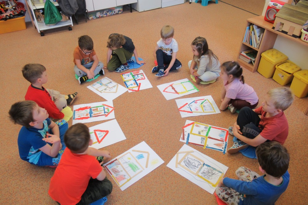 Týden jsme začali oslavou Doriánkových narozenin. Potom jsme si povídali o místnostech v domácnosti a jejich vybavení. Děti správně přiřadily vybrané obrázky do jednotlivých místností. Užili jsme si tělocvičnu a zahráli hru na "domečky". Lepili jsme, kreslili a krásné domečky si prohlédněte v šatně. Děti se krásně rozmluvily popisem puzzlí. Seznámili jsme se s novou písní a hráli na ozvučná dřívka. Při hrách si děti z různých stavebnic samy vymýšlely a sestavovaly různé vybavení do svých postavených obydlí. Děti popisovaly své pokojíčky a pak je i nakreslily. Řadili jsme obrázky podle velikosti. Hra s hledáním stejných dvojic děti zaujala. Vyrazili jsme všichni do knihovny a už známe rozdíl mezi encyklopedií a leporelem. Pokračovat a opakovat budeme ještě i v dalším týdnu.