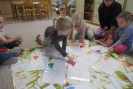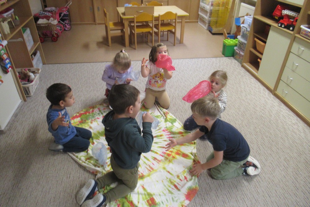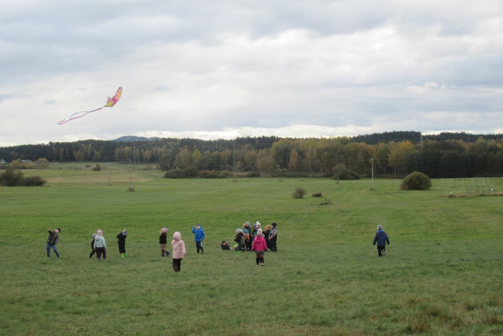 Celý týden nás motivovala pohádková knížka Míček Flíček - tam se nachází drak Mrak, a právě draci nás provázeli celý tento týden. Děti se seznámily s písní Vyletěl si pyšný drak, počítali jsme mašličky, určovali jsme barvy, děti je řadily a lepily podle pokynů a také jsme si zacvičili se stužkami. Z vylisovaných listů, si děti vytvořily krásné draky, ale nebyli to jediní vytvoření draci. Děti měly za úkol doma poskládat mašličky a ve školce jsme si k nim vyrobili draky z barevného papíru a ocásky děti navlékly z kaštanů. A na závěr týdne jsme vyrazili na louku pouštět skutečného draka a děti si to moc užily!