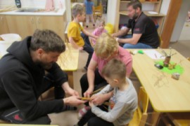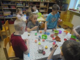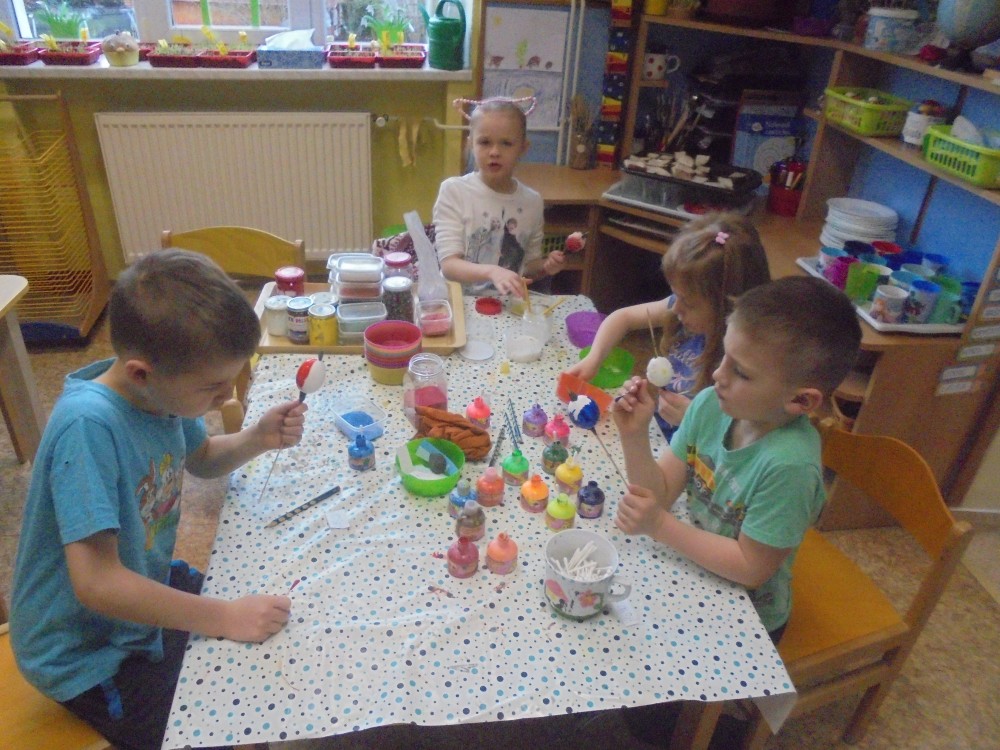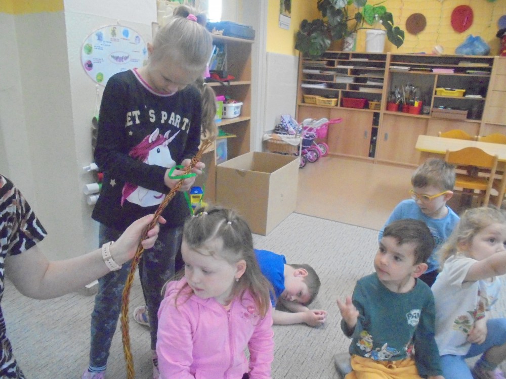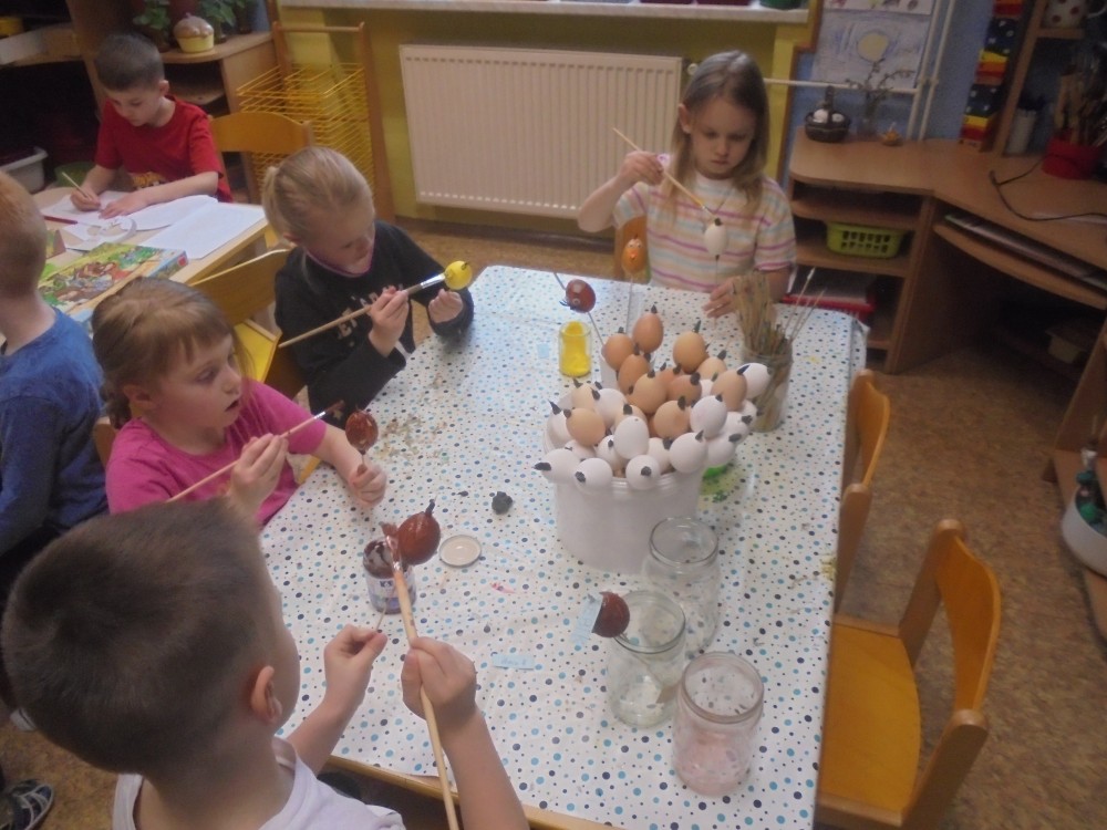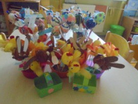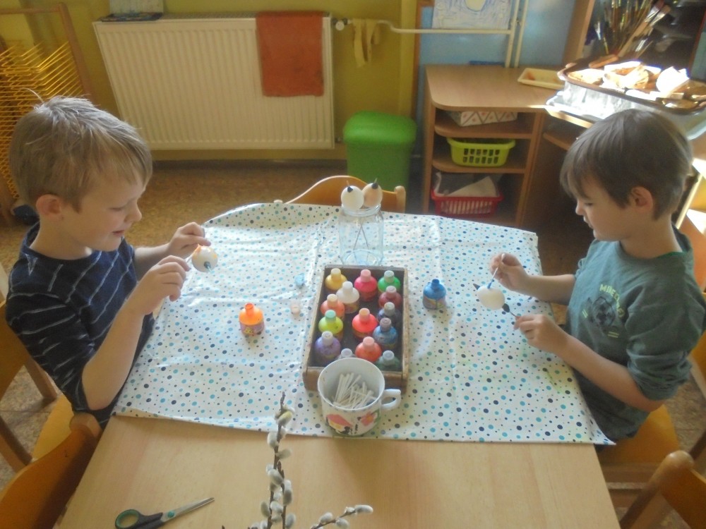 V tělocvičně se děti aktivně připravovaly na blížící se „pódiové vystoupení“. V knihovně jsme se věnovali pohádkám. Podle obrázků děti vyprávěly, co se stalo na začátku, uprostřed a na konci pohádky a pohádkové obrázky se snažily správně seřadit. Ve středu nás čekala další lekce plavání, kterou si děti užily. Během týdne jsme se také seznamovali s velikonočními zvyky a tradicemi a proč jsou Velikonoce velkým svátkem Diskutovali jsme o tom, proč se barví vajíčka, pečou mazance a chodí se koledovat. Vajíčka děti malovaly a zdobily. S pomocí rodičů si chlapci upletli pomlázky. Opakovali jsme si také znalosti o hospodářských zvířatech a jejich užitku. Společně jsme po celý týden hráli různé společenské hry a učili se prohrávat i vyhrávat.