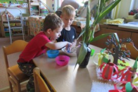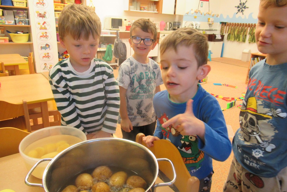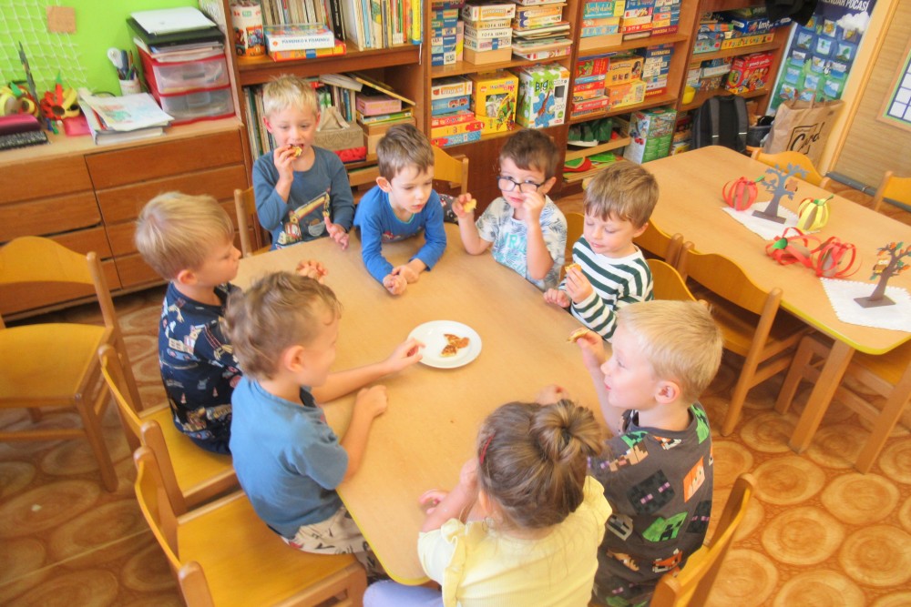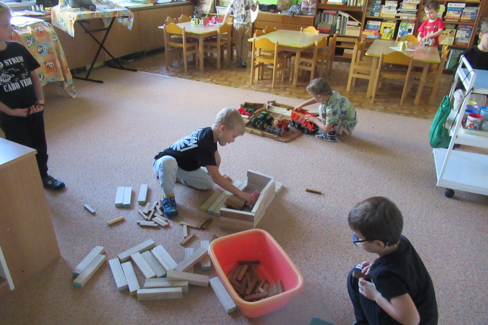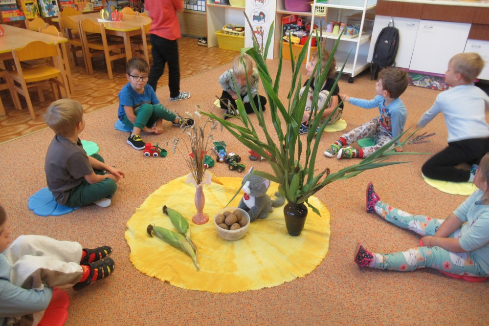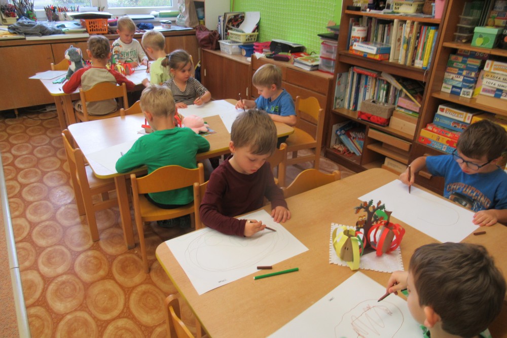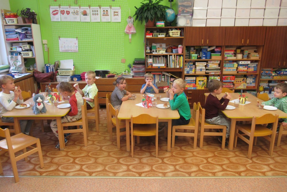 V pondělí jsme všichni navštívili knihovnu, kde jsme se dozvěděli o recyklaci papíru, zahráli si na knihovnici, která nám půjčoval knihy, V úterý jsme zdolávali překážkovou dráhu, kdo se trochu bál, pomohly jpaní učitelky A ve středu jsme si to užili v bazénu. Plavali jsme s pomůckami, foukali do vody, bylo fto fajn. Na počítači se děti podívaly, jaké podzimní práce dělají zemědělci na poli. Děti si hrály s traktory, stavěly jim garáže určovaly kam jedou, kde stojí. Děti poznávaly plody z pole. Loupaly kukuřici, třídily hrách a fazole pinzetou. Nejvíc e si děti užily vaření - bramborák, bramborové placky, ani na maminku nezbyo. A malování doplnilo kreativní týden. Děti namalovaly pole s kukuřicí a pole plné zeli. A s Mathym a Péťou jsme společně oslavili jejich páté narozeniny.