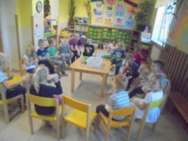 Listí žlouztne, poletuje, po strništi vítr duje, bude brzy mráz. A my se postarámes o ptáčky a zvřátka z lesa. Děti s připomněly, c je to krmtko a krmelec, dlnly je zvřátky a ptáčy, hledaly modřnku, koňadru, vrabce, straku, soju i datla, lasní zvířátka. Do okna jsme zavěsili krmtko a s kaštany jsme se vydali ke krmeci. Najdi první hlásku! Vytleskej název obrázku, zahraj na rytmický nástroj! seřaď obrázky podle velikosti! Tak vypadaly vzdělávací chvíle ve školce.
