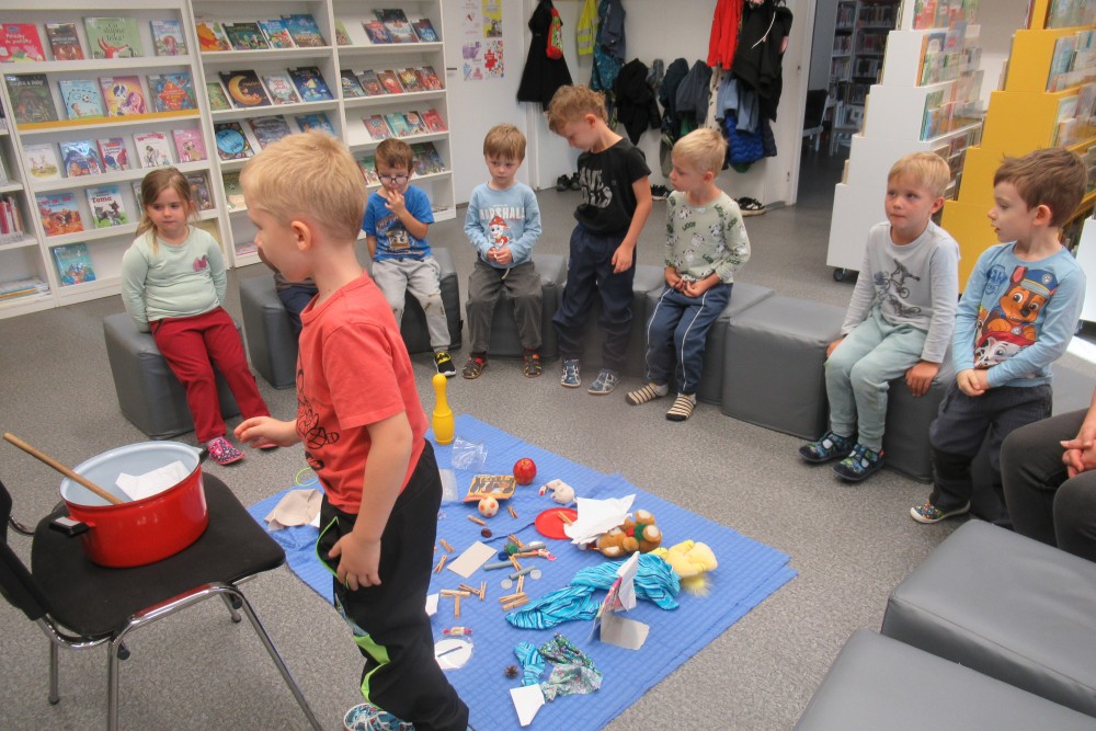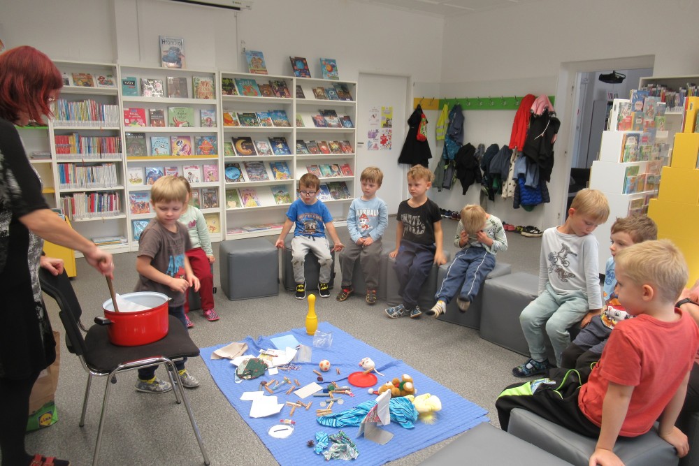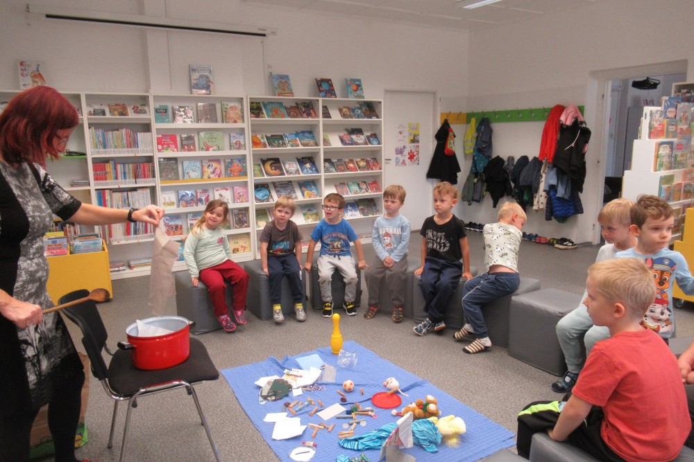Děti z horního Kvítka zahájily pravidelné návštěvy v knihovně. "Dolňáci" nemohou a tak první lekce JAK SE DĚLÁ PAPÍR, KNIHA proběhla ve školce. Leporelo, encyklopedie - to bylo další téma v knihovně.