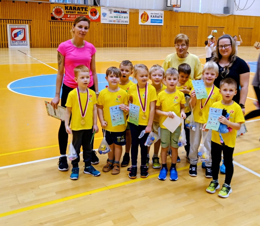 DESETIBOJ PŘEDŠKOLÁKŮ se opravdu povedl. Děti splnily všechny dané úkoly a tak naše tři družstva uspěla. Družstvo - Venda, Maky a Jáša dokonce zlaté medaile: Gratulujemeyes