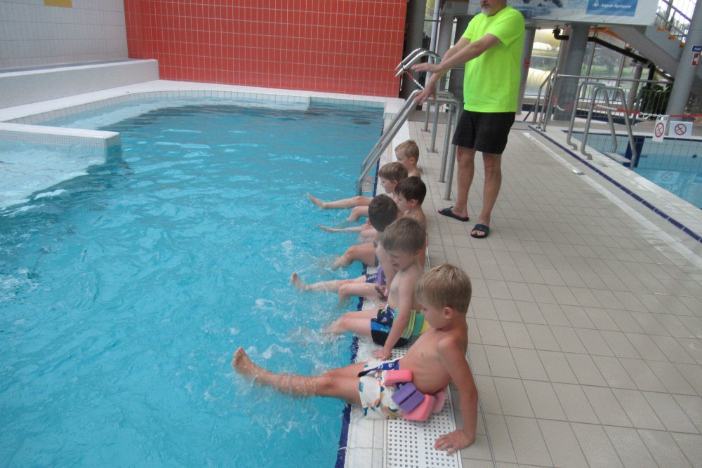 Děti z horního Kvítka si užily bazén - seznámily se s vodním světem a plavčíkem Václavem, který se jim plně věnoval. Tak opět za týden! 2. lekce plavání byla opět super. Probíhalo formou hry, lovení míčků, rybiček a uklízení zpět do košíčků. Již všechny děti i Ti nejmenší se osmělily a zkusily plavat samy. Dnes bylo plavání pro odvážné děti, protože poprvé plavaly ve velkém bazéně.Další lekci plavání si děti z horního Kvítka opět užily. Už aby nás bylo víc, těšíme se na "dolňáky" A už jsou tu opět všichni předškoláci - HURÁ!!