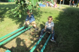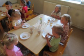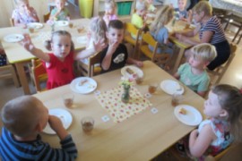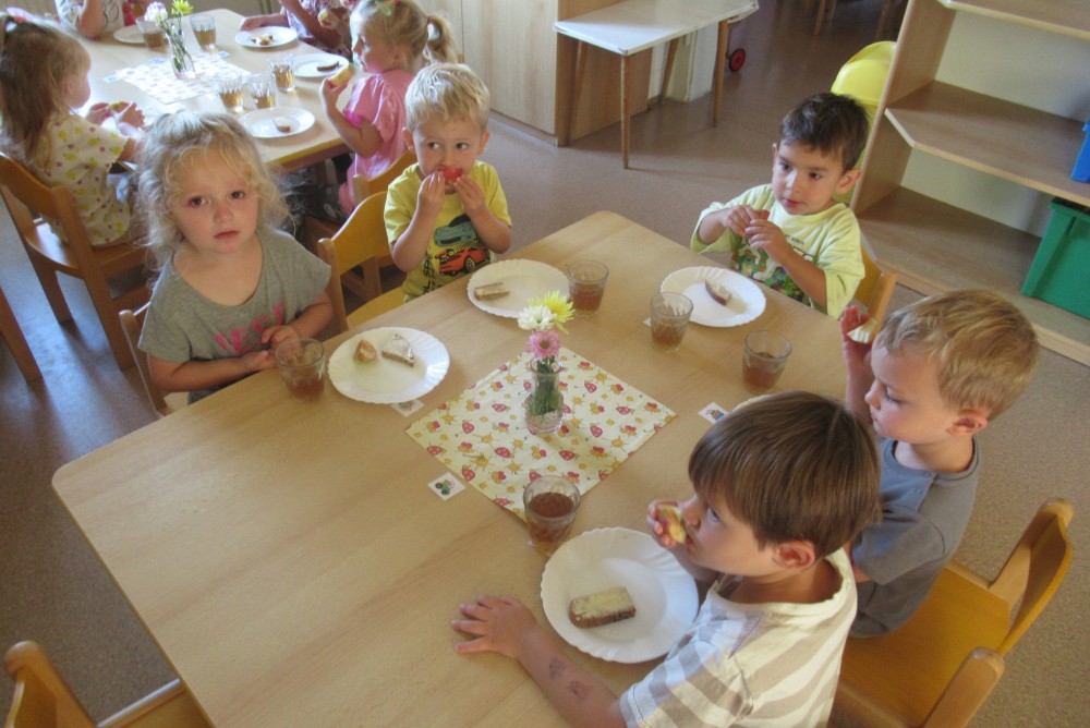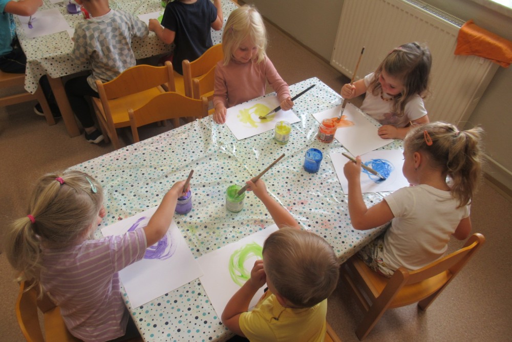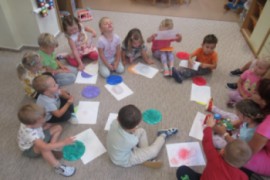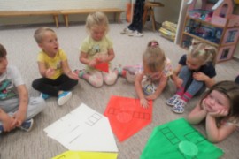 První týden s dětmi ve školce byl převážně seznamovací. Děti si na vybraly značku, našly si svá místa u stolečků a v šatně. Jak se správně sedí u stolečků? To přeci už každý ví a kdo neví, tak se to naučí. Děti si opakovaly a seznamovaly se s barvami pomocí barevných domečků. Našemu šášovi děti vytvořily mnoho barevných balónků. Nejdříve malovaly balónky temperovou barvou. Šášovi se balónky moc líbily a děti si mohly vybrat, kam jejich namalovaný balónek šášovi umístí. Kam patří hračky a kdy se uklízí? naučíme se správně třídit a rovnat stavebnice....Zahráli jsme si také na muzikanty. Zpívali jsme jednoduché písničky za doprovodu dřevěných tyček.