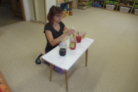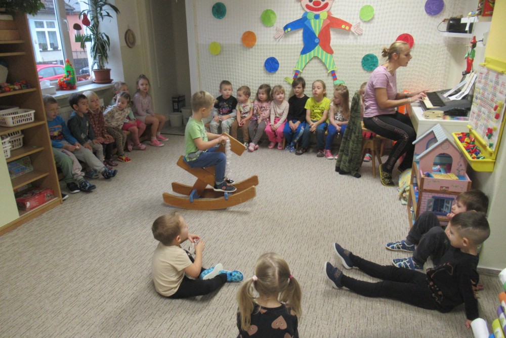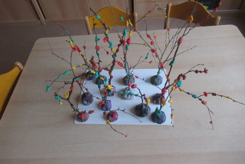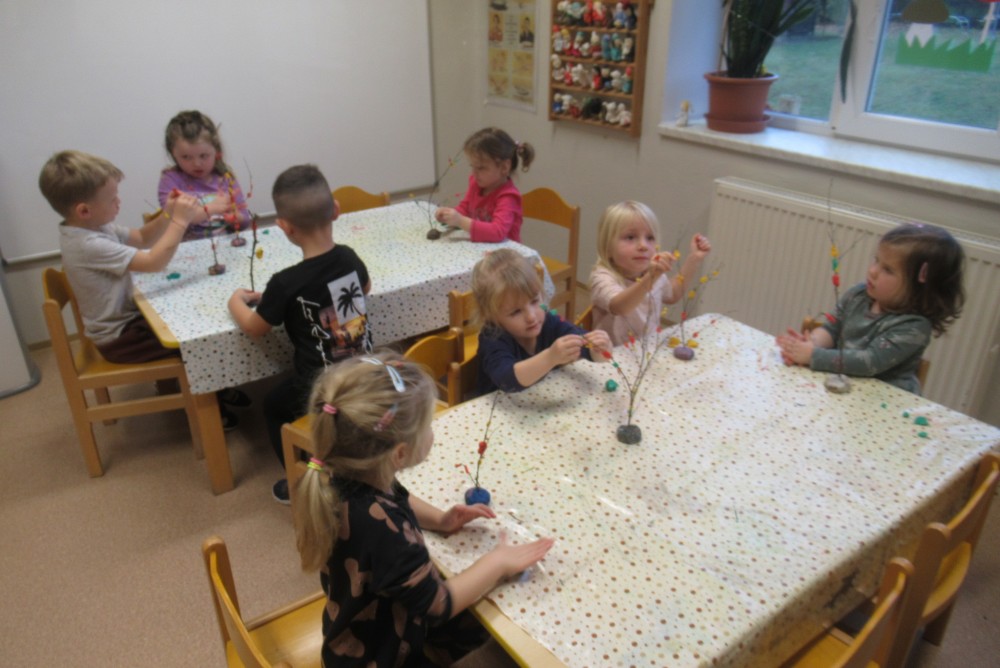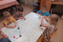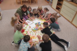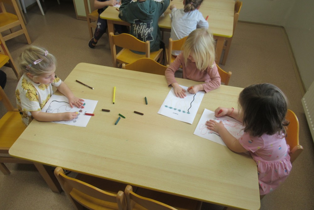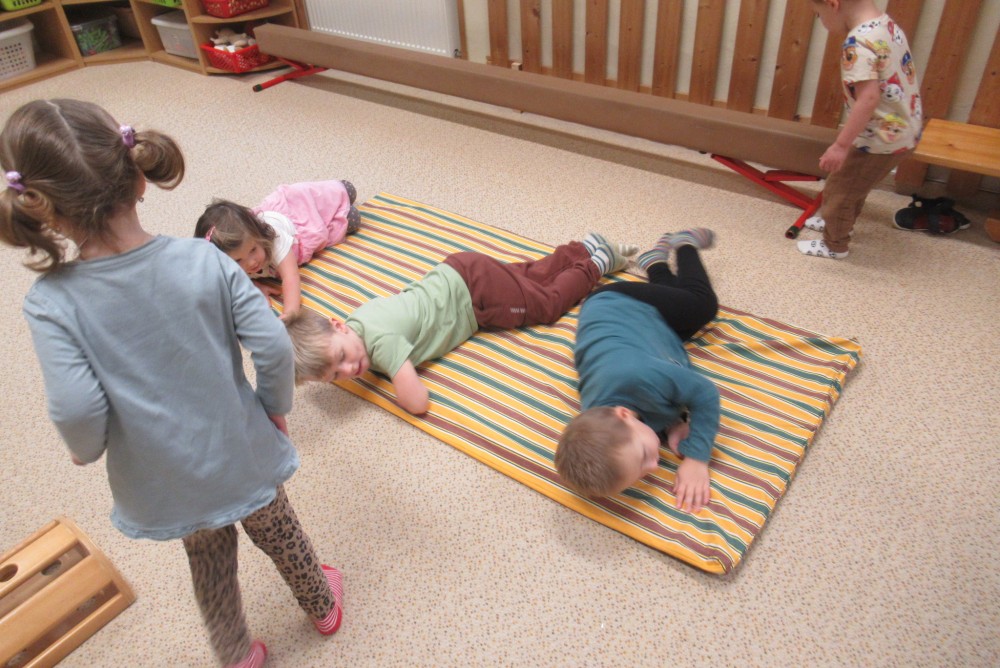 Jaké barvy nám šašek Honzík namíchal na lístky podzimu? Pokud to ještě někdo neví, tak ať se zeptá našich dětí. S dětmi jsme si povídali o barvách, udělali jsme si pokus s barvami a naučili jsme se básničku "Podzim". Na procházce jsme nasbírali javorové lístky na našeho "Vlka". Děti odelovaly barevné lístečky (kuličky), které dávaly na větvičku stromu. Děti malovaly prstíky lístečky a vznikly tak krásné barevné podzimní stromy. Stromy s barevnými lístky si děti zkusily postavit i z dřevěných kostek. Zahráli jsme si hru "Barevné, padající lístečky". a naučili jsme se písničku "Foukej, foukej větříčku," aby nám ty krásné barevné lístečky padaly ze stromů na zem. I v grafomotorice si děti vyzkoušely jak padá listí.