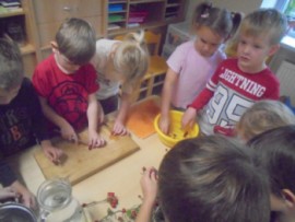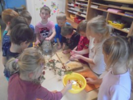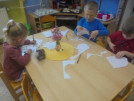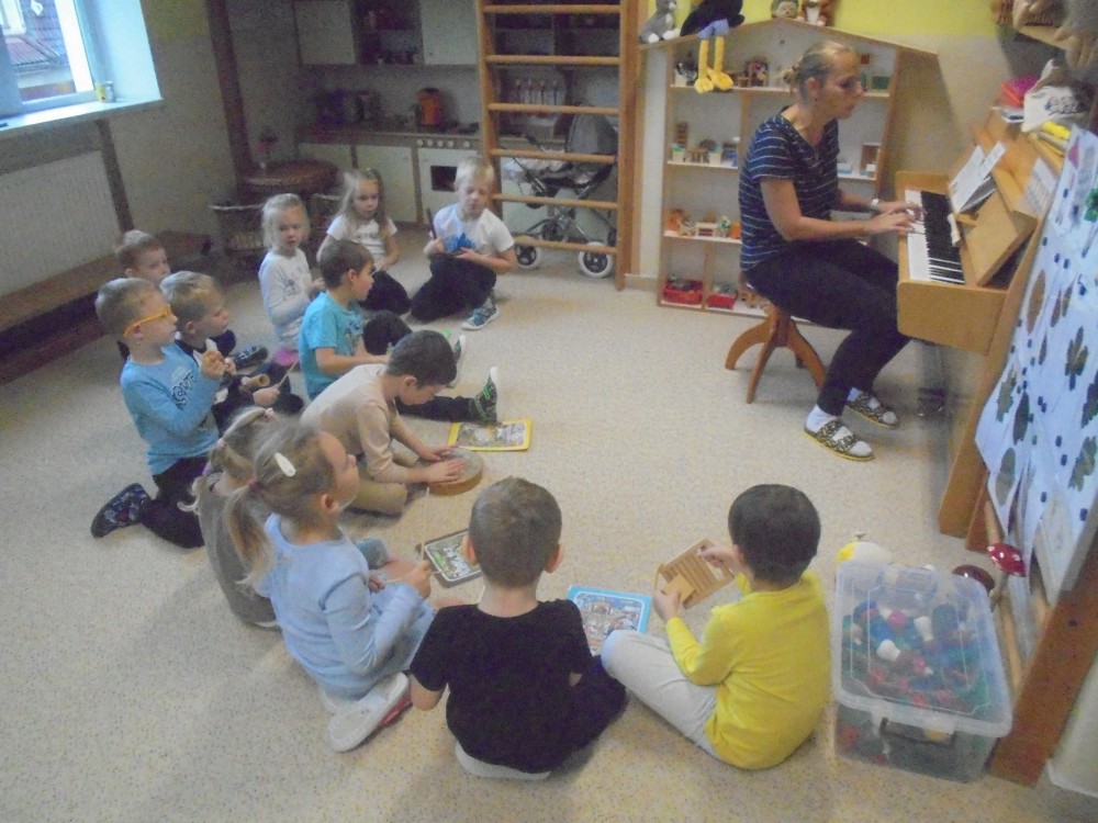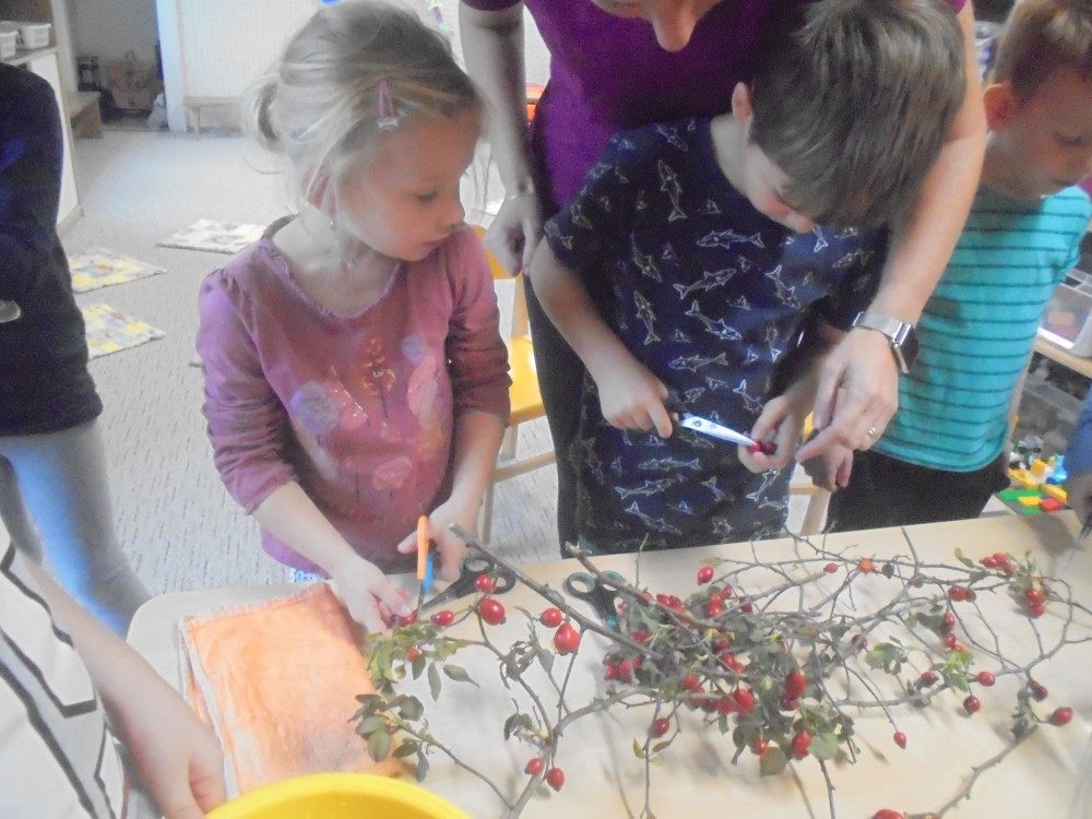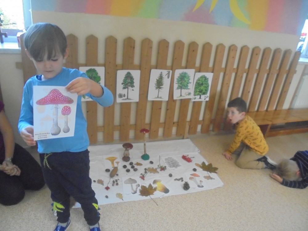 Pohádka Jak Křemílek s Vochomůrkou vařili šípkový čaj nás inspirovala k výrobě šípkového čaje z čerstvých šípků. Houby, houby, houbičky, ukažte své hlavičky. Opakovali jsme nejznámější druhy hub (jedlé i nejedlé) a následně děti tvořily houby s lístečky. Při hrátkách s přírodninami jsme si zopakovali matematické představy, určování přídavných jmen velký, menší, nejmenší a také jsme přírodniny využili při ranním cvičení. Děti tvořily skřítky z listí, modelovaly houbičky, pomocí krepového papíru vykouzlily barevné lístečky, kreslily tuží své postavy. S pohádkou ,, Hříbek“ si děti pomocí obrázků procvičily časové skládání děje. S písničkou ,, Jaro, léto, podzim, zima“ jsme si zahráli na hudebníky a pomocí Orffových nástrojů děti písničku doprovodily. Při vycházkách do lesa jsme pozorovali měnící se podzimní přírodu. Nacházeli jsme přírodniny, které děti rády sbíraly, hromadily a postavily si i lesní domeček. Byl to opravdu týde, plný tvoření a poznávání nového.![]()