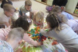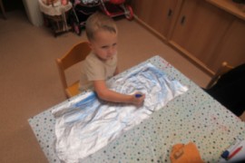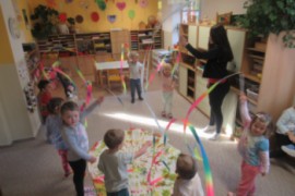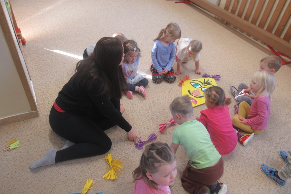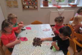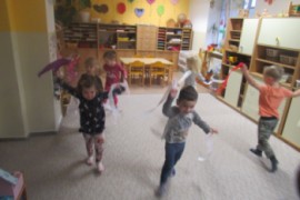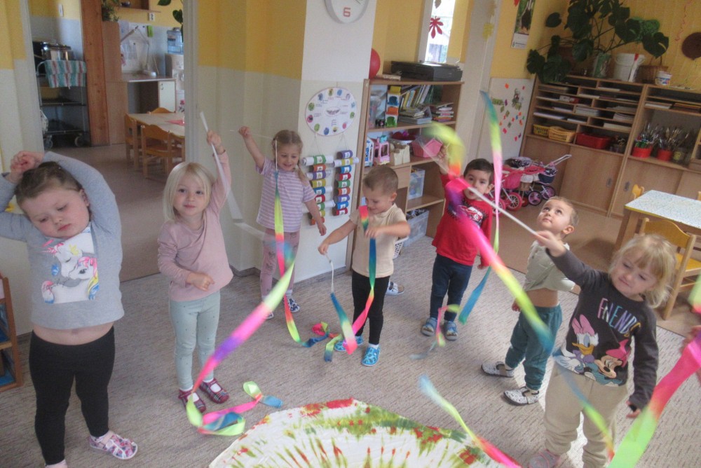Celý týden nás motivovala pohádková knížka Míček Flíček - tam se nachází drak Mrak, a právě draci nás provázeli celý tento týden. Děti se seznámily s písní Vyletěl si pyšný drak, počítali jsme mašličky, určovali jsme barvy, děti je řadily a lepily podle pokynů a také jsme si zacvičili se stužkami. Z vylisovaných listů, si děti vytvořily krásné draky, ale nebyli to jediní vytvoření draci. Děti měly za úkol doma poskládat mašličky a ve školce jsme si k nim vyrobili draky z barevného papíru a ocásky děti navlékly z kaštanů. A na závěr týdne jsme vyrazili na louku pouštět skutečného draka a děti si to moc užily!