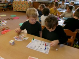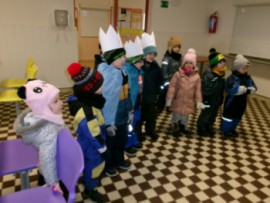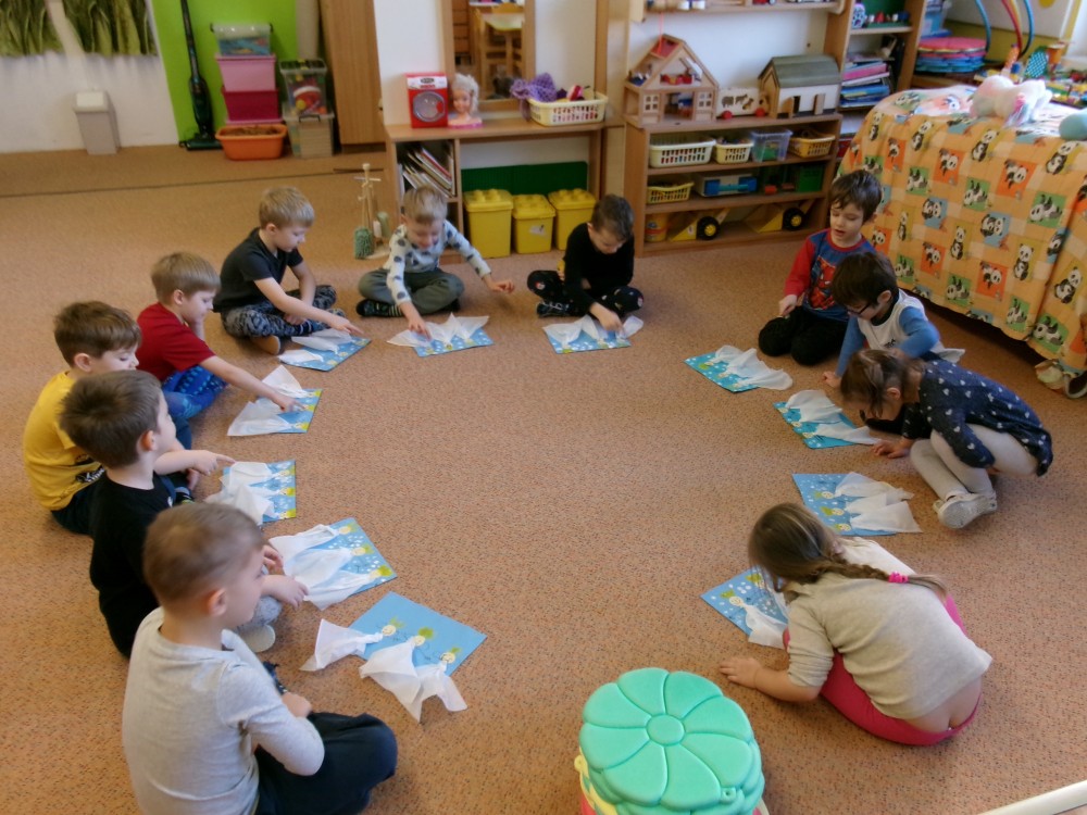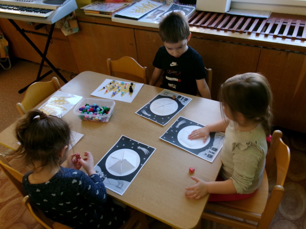 Týden jsme začali vyprávěním o Vánocích. A také jsme vyrazili do knihovny. Děti si poslechly příběh o Třech králích a už ví, kdo byli, a co nesli Ježíškovi. Troška lepení, dokreslování, barvy a vznikly krásné kresby. Vyrazili jsme sjíždět kopec na ježdíkách, to byla zábava. Foukali jsme do papírových vloček. Procvičili si pusinky i se zrcátky. Třídili a přebírali správná písmenka do kruhů. Hra na krále, či stolní hry "cesta Tří králů, putování za hvězdou nebo královská koruna" děti moc bavilo. Královské koruny jsme stavěli i z kostek a děti si je zdobily drahokami (PET víčka). Procvičení prstíků, ruky až po ramena, říkanka k tomu a místo pily máme korunu. Nakonec jsme vyrazili poprvé bruslit a děti byly moc šikovné. Foto z bruslení najdete vninfo pro rodiče