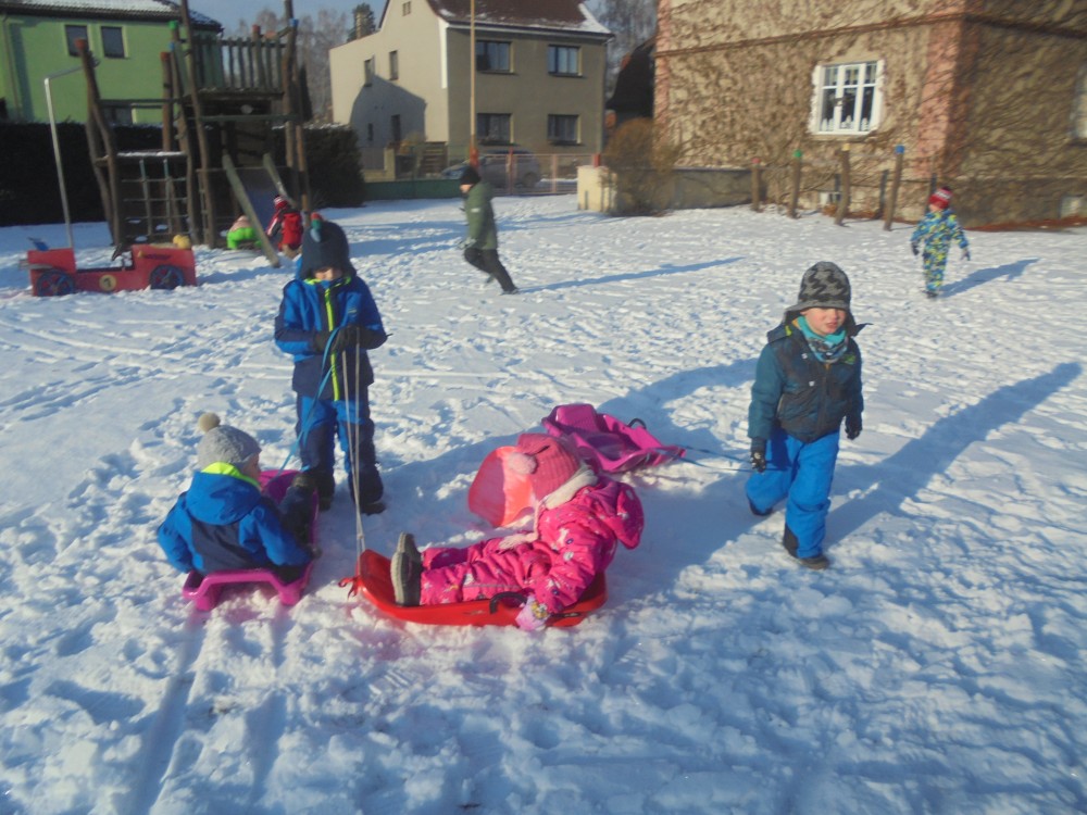 V pondělí jsme navštívili knihovnu na téma autoři a ilustrátoři dětských knih. Svátkem Tří králů jsme se rozloučili s Vánocemi. Příběhem ,,Jak to bylo na Tři krále“ z knihy Chaloupka na vršku (Š. Váchová) jsme si připomněli tříkrálovou legendu i zimní pranostiky. Děti si donesly svoje hračky od Ježíška a každý z nich s nadšením vyprávěl, co doma našel pod stromečkem. Tento týden se nám zima ukázala v celé své kráse, sněhové nadílky jsme využili při pobytu venku. Společně jsme si připomněli charakteristické znaky zimy i ostatních ročních období a také jsme si zatančili s písničkou ,,Dva mrazíci uličníci“. S písničkou ,,Postavil jsme sněhuláka“ jsme si zopakovali pojmy velký - menší – nejmenší, děti skládaly sněhuláčky i z pet. víček, ke konci týdne jsme pozorovali, jak mráz čaruje. Nechali jsme zmrznout kelímky s vodou a malými zvířátky. Také jsme byli poprvé na bruslení. Některé děti i přes prvotní strach postavit se na led, po chvilce spolupracovaly s trenéry a na konci hodiny se většina dětí pohybovala na ledu bez pomocných hrazdiček. Zápisy do základních škol se kvapem blíží a my se samozřejmě pečlivě na ten slavný den připravujeme. Foto z bruslení najdete v info pro rodiče