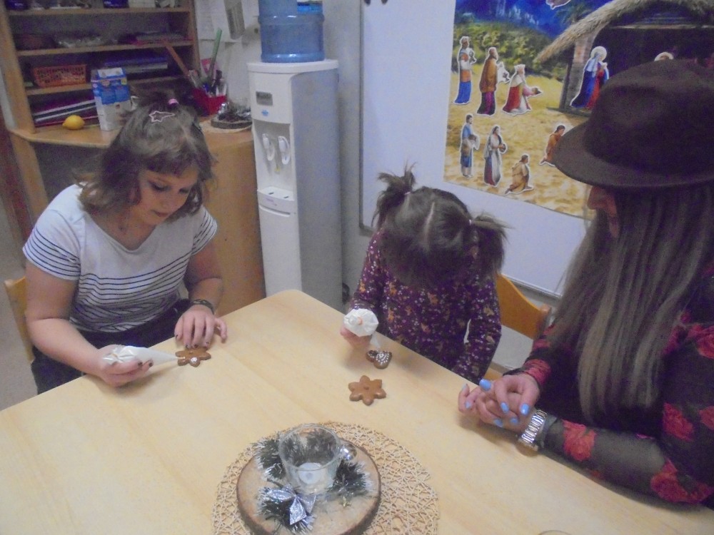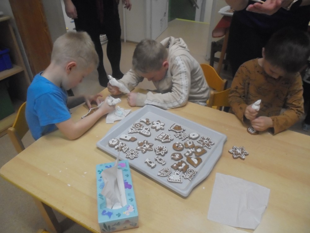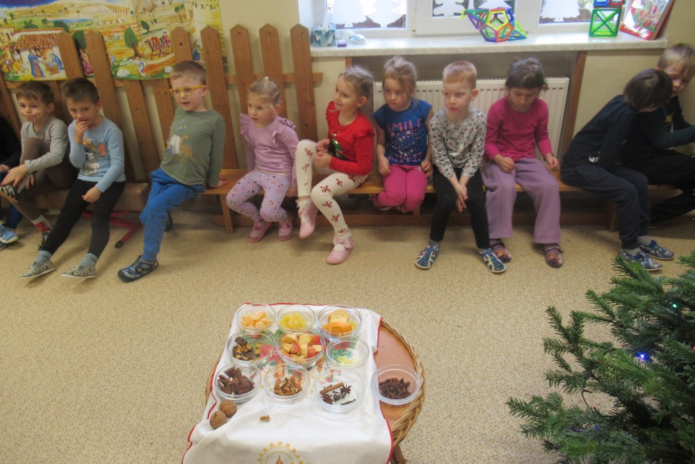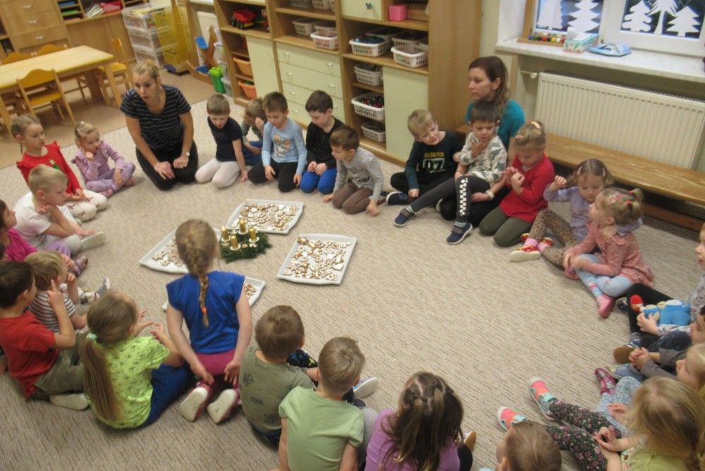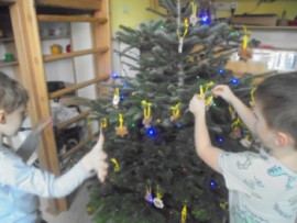 Druhý adventní týden jsme zahájili v tělocvičně cestou za vánočním stromečkem. Vánoční stromeček jsme objevili ve třídě a děkujeme všem za pomoc při společném zdobení perníčků, na stromečku vypadají krásně. Tradiční vůně a typické chutě Vánoc jsme si vyzkoušeli na vlastní kůži. Nikdo se nebál ochutnávat, osahávat ani očichávat se zavřenýma očima.:-) Ve středu jsme měli poslední lekci plavání, děti byly jako rybky ve vodě. S nadšením plavaly překážkovou dráhou, kterou jim lektoři připravili (foto v informacích pro rodiče). Také nám naděloval Ježíšek, pod stromečkem děti našly spoustu dárečků, s nadšením je rozbalovaly a hrály si s nimi. Celý týden jsme tvořili. Děti vytvořily vánoční přáníčka, svíčky z včelího vosku, stromečky z vlny, namalovaly obrázek s přáním, co by chtěly od Ježíška. A také jsme si zahráli jazykovou hru s vánočními obrázky.