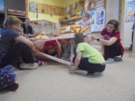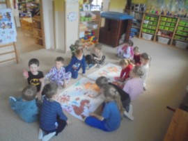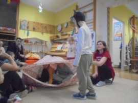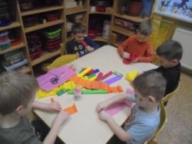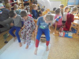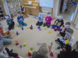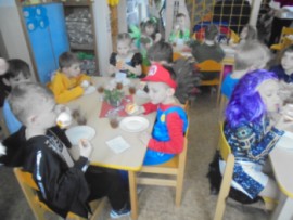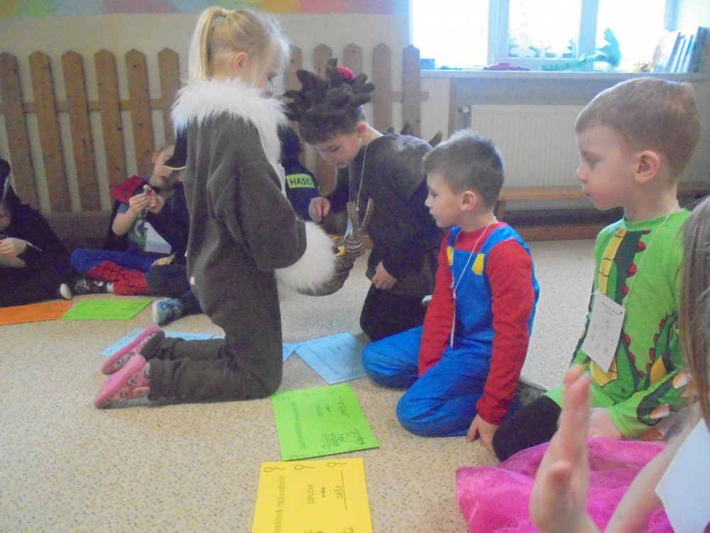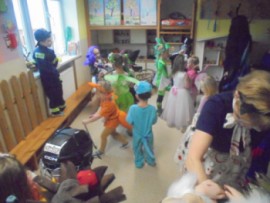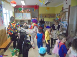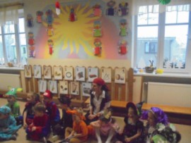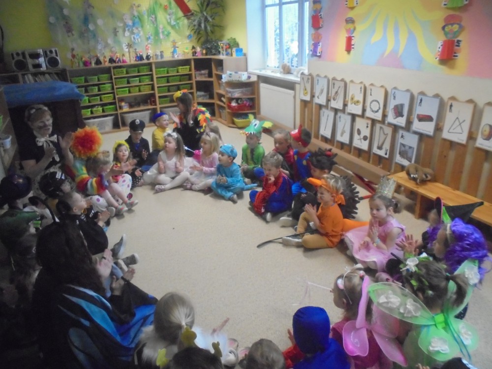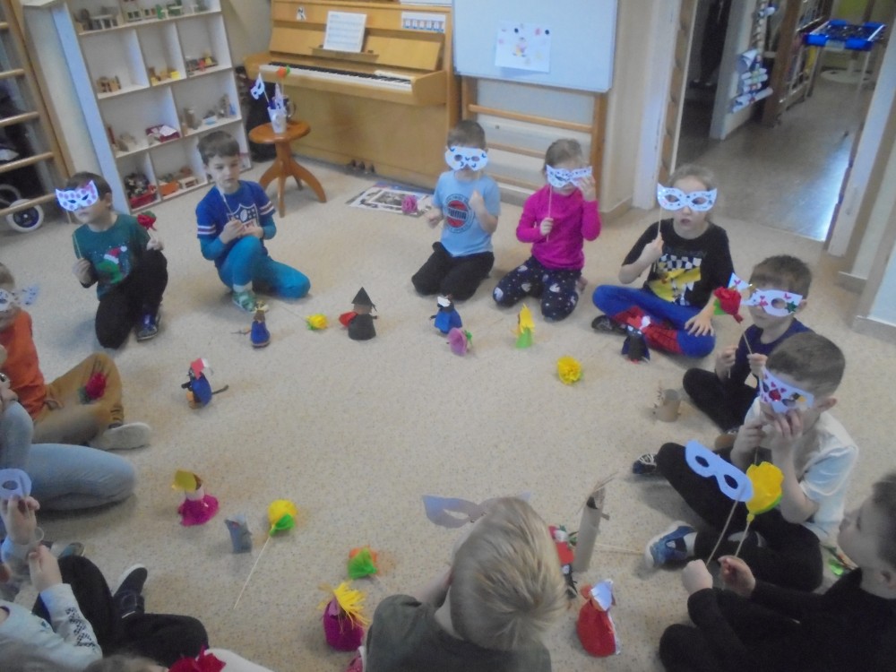 S veselými muzikanty jsme navázali na Masopustní tradice a karnevalové radovánky. Děkujeme rodičům za bohaté vstupné za pohádkové představení, které si děti připravily. Dětský karneval se opravdu povedl. Děti i paní učitelky přišly v rozmanitých maskách a společně jsme si užili zábavné a hravé dopoledne. Následující den jsme měli netradiční. Co nás čekalo ve třídě? Obrácené stoly a velký nepořádek v herně, a tak jsme se společně dali do úklidu. Následovalo odpočívání na dekách a poslech popletené pohádky O koblížkovi, samozřejmě ji děti správně převyprávěly. A jak se kreslí, když je den naruby? No přeci nohou a že to nebylo vůbec jednoduché. Také k nám přišel pan fotograf, který předškolákům vytvoří na památku fotoknihu. Děti také tvořily papírové škrabošky i papírové kytky. Byl to týden plný smíchu????
