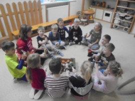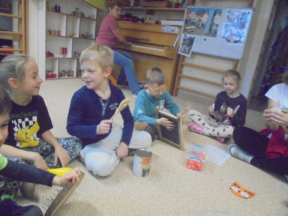 Začíná období masopustu – času plného hudby, veselí, masek a pohybu a v tomto duchu se nesl i náš týden. V tělocvičně jsme si nejprve pořádně protáhli svá těla se švihadly, poté jsme se s chutí proběhli překážkovou dráhou a zahráli si pohybovou hru „Maso – půst“. Seznamovali jsme se také s hudebními nástroji. Děti je poznávaly podle zvuku, vyzkoušely si, jak se na ně hraje a některé hudební nástroje namalovaly a vymodelovaly. Naučili se písničku „Já jsem muzikant…“ , kterou doprovodily pohybovým znázorněním hudebních nástrojů. Největší radost dětem udělala hra na opravdový buben, trubku a foukací harmoniku. V úterý jsme navštívili Muzeum karnevalových masek v Zákupech, kde si každý namaloval papírovou masku. Týden jsme zakončili bruslením, kde jsou již vidět velké pokroky.
