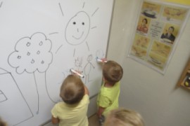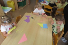 Boudo budko, kdo v tobě přebívá? Tuhle oblíbenou pohádku si děti poslechly, vyjmenovávaly a počítaly zvířátka, postavily veliký domeček z molitanových kostek a pohádku si i s maskami zvířátek zahrály. Dětem se pohádka tak moc líbila, že ji chtěly hrát každý den. S dětmi jsme si povídali, jak vypadá dům,ve kterém každý z nás bydlí, pojmenovávali jsme různé části, co každý domeček má - okna, komín dveře, střecha... Domeček jsem si samozřejmě také vytvořili - za pomoci vodových barev děti nakreslily pozadí (kopeček a nebe) a pomocí barevných papírů, nůžek a lepidla si každý poskládal svůj vlastní barevný domeček, za dopravu básničky Byl jednou jeden domeček, která se dětem moc líbila.