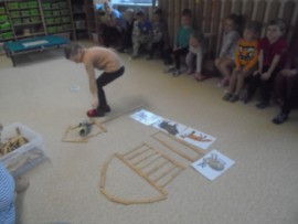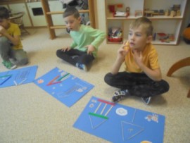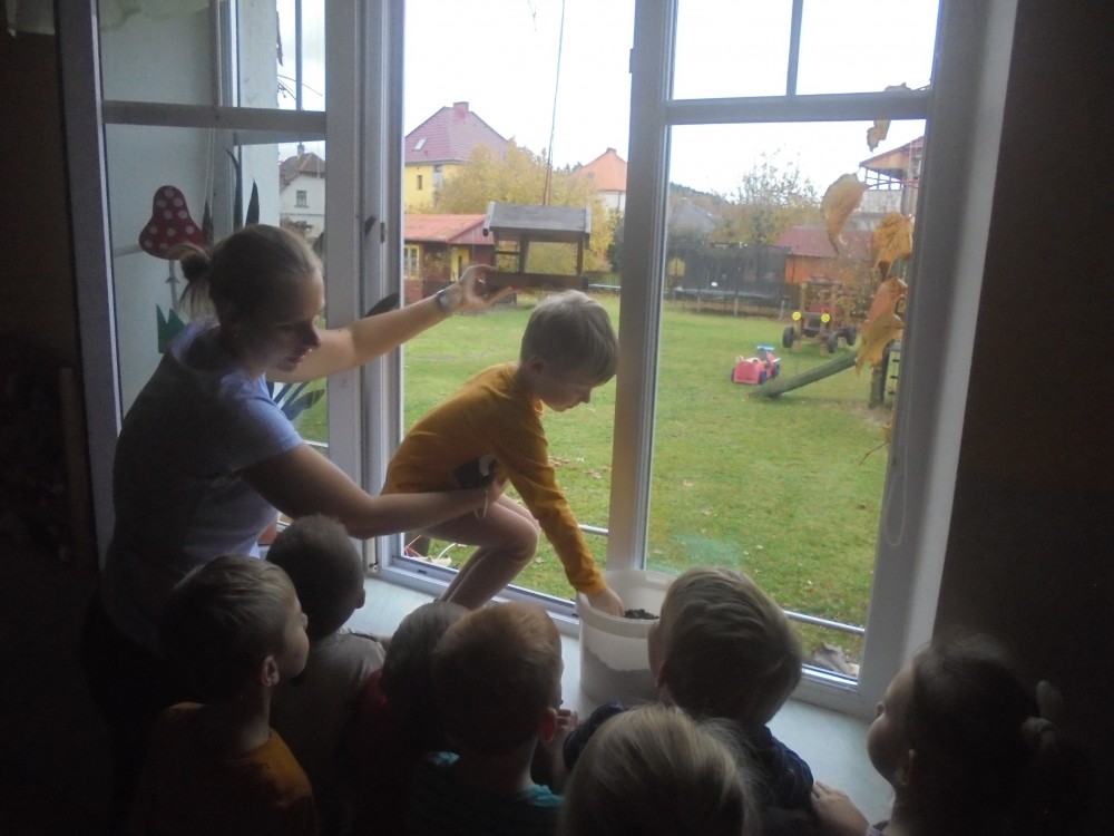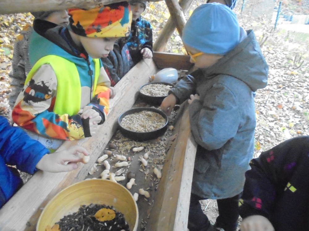 Listí žlouztne, poletuje, po strništi vítr duje, bude brzy mráz. A my se postarámes o ptáčky a zvřátka z lesa. Děti s připomněly, c je to krmtko a krmelec, dlnly je zvřátky a ptáčy, hledaly modřnku, koňadru, vrabce, straku, soju i datla, lasní zvířátka. Do okna jsme zavěsili krmtko a s kaštany jsme se vydali ke krmeci. Najdi první hlásku! Vytleskej název obrázku, zahraj na rytmický nástroj! seřaď obrázky podle velikosti! Tak vypadaly vzdělávací chvíle ve školce.