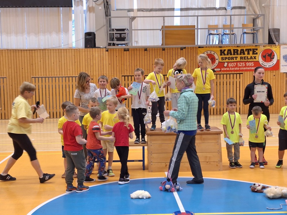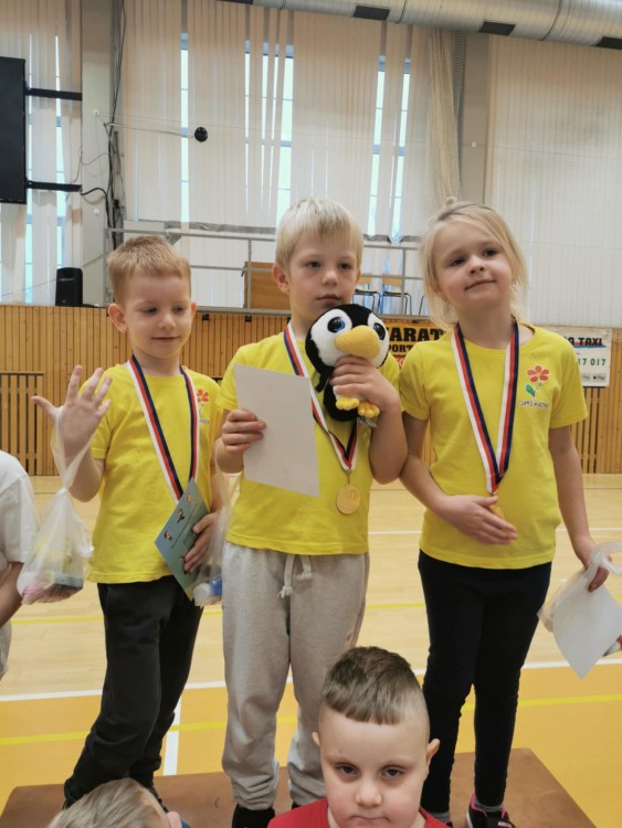 DESETIBOJ PŘEDŠKOLÁKŮ se opravdu povedl. Děti splnily všechny dané úkoly a tak naše tři družstva uspěla. Družstvo - Venda, Maky a Jáša dokonce zlaté medaile: Gratulujemeyes