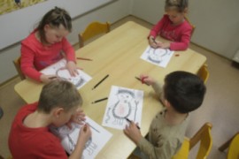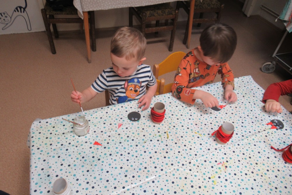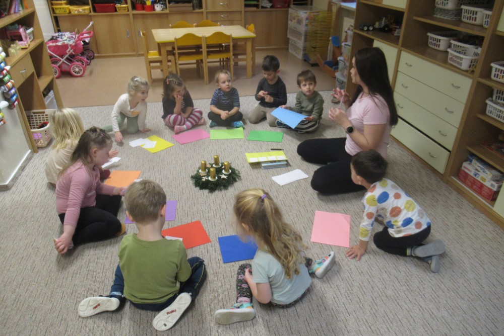 Týden jsme začali zápálením první adventní svíčky - Naděje, u které jsme si s dětmi pověděli o významu adventu a děti si vystřihly z papíru vlastní svíčky a uvolnily si ruce při kresbě kouře. S dětmi jsme si pověděli o tradici Mikuláše, čerta a anděla a děti si procvičily počítání - počítaly uhlíky pro čerty a čertíka si každý podle sebe vymaloval. Ve středu jsme byli na výletě v Roudnici nad Labem, kde jsme pomohli znovu zapálit pekelný plamen. Společné jsme si také vyrobili čerty a anděli - děti namotávaly bavlnku na ruličky, dokreslily obličeje, nalepily rohy a křídla, přidělaly se ruce a nohy z drátků a korálků a vznikly nám krásné výrobky. Celý týden jsme završily čertím a andělským rejem - děti tancovaly , plnily úkoly, a protože jsou moc hodné a šikovné, dostaly od Mikuláše balíčky s překvapením.
