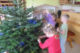 Blíží se Vánoce a Šašek s dětmi se už nemohou dočkat, kdy si rozbalí dárečky. S dětmi jsme si povídaly o Betlému, zpívaly písničky a napekly perníčky. Co by to bylo za Vánoce bez stromečku? Děti se naučily básničku o Jedličce a jednu voňavou jedličku si děti vyrobenými ozdobami ozdobily. Ke konci týdne nám Ježíšek nadělil dárečky. Dětem se hračky velice líbily a nejraději by si už jen hrály s novými hračkami.
