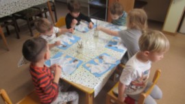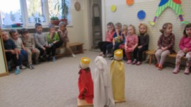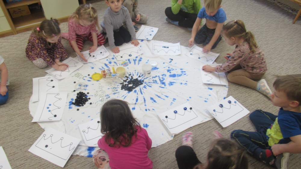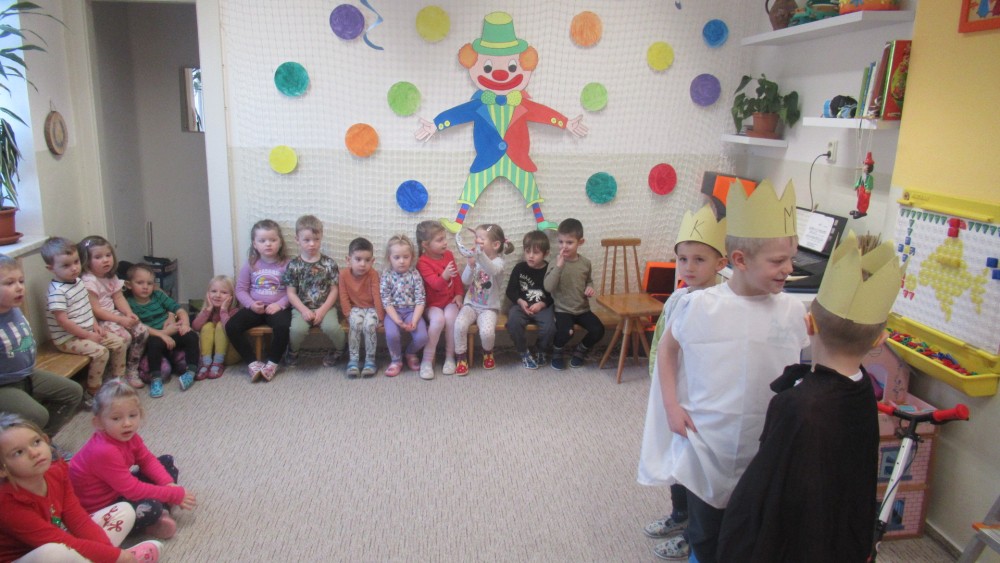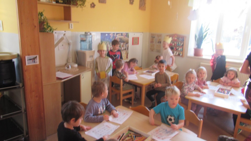 Šašek s dětmi se seznámili se třemi králi nejdříve pomocí příběhu. Tři králové nás dokonce přišli navštívit do třídy. Společně jsme si zazpívali písničku "My tři králové." Děti si zkusily projít náročnou cestu k Betlému, kde překonávaly překážky. V průběhu týdne děti vytvořily "Tři krále," hledaly stejné královské koruny a počítaly na nich diamanty. Jednu korunku i s diamanty si děti vytvořily a následně odnesly domů. Jelikož nám napadl sníh, tak bobovačka nesměla  chybět. Doufáme, že sníh nám ještě zůstane, abychom si mohli postavit sněhuláka.